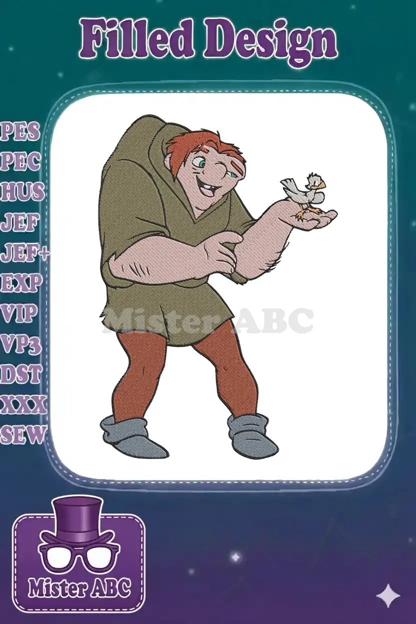 Hunchback of Notre Dame Quasimodo holding bird embroidery designs