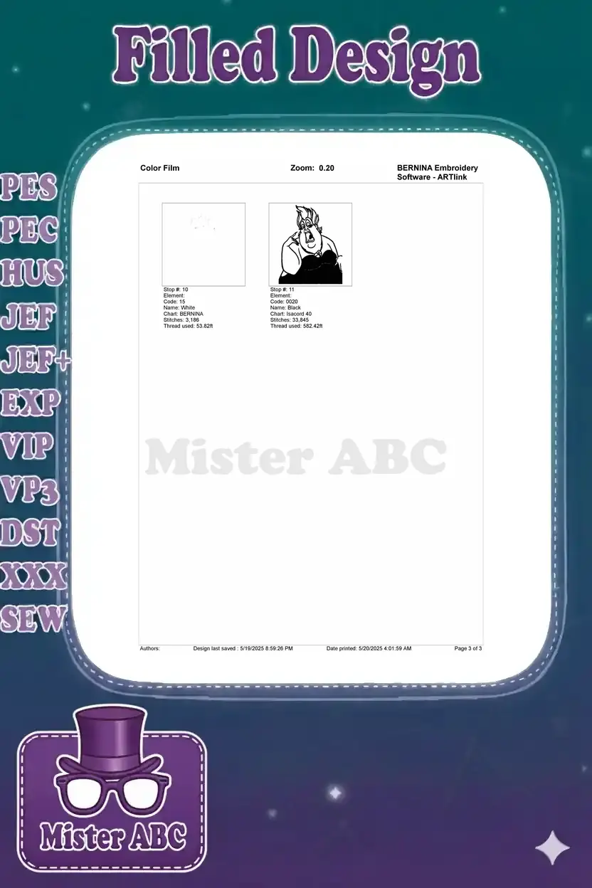 A captivating Ursula embroidery design, perfect for adding a touch of villainous charm to any project. Bring the sea witch to life!