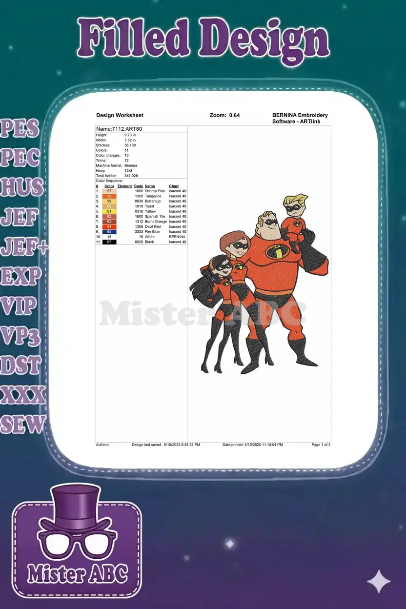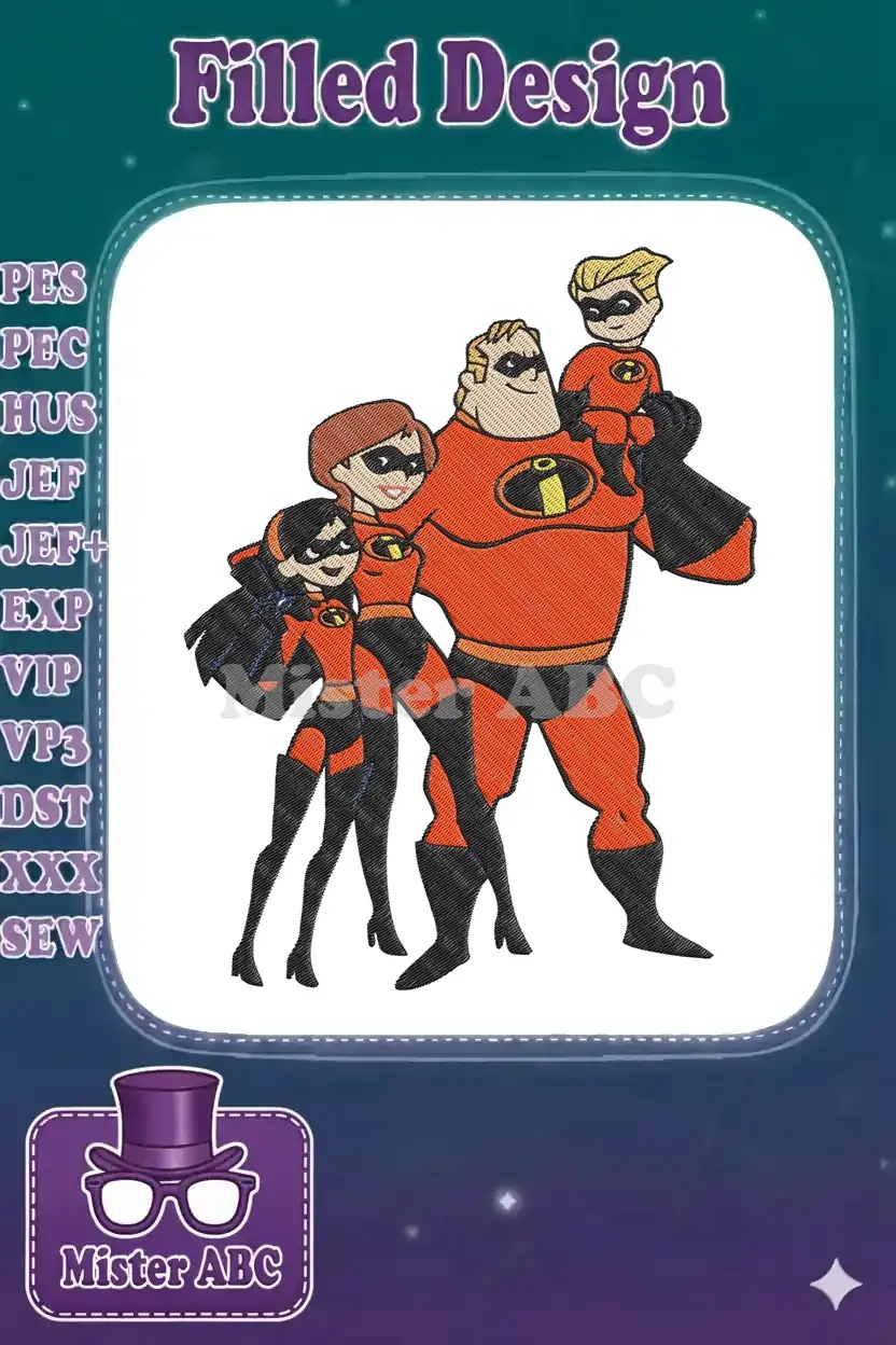 The Incredibles Family Superhero Cartoon Embroidery Designs for Fans