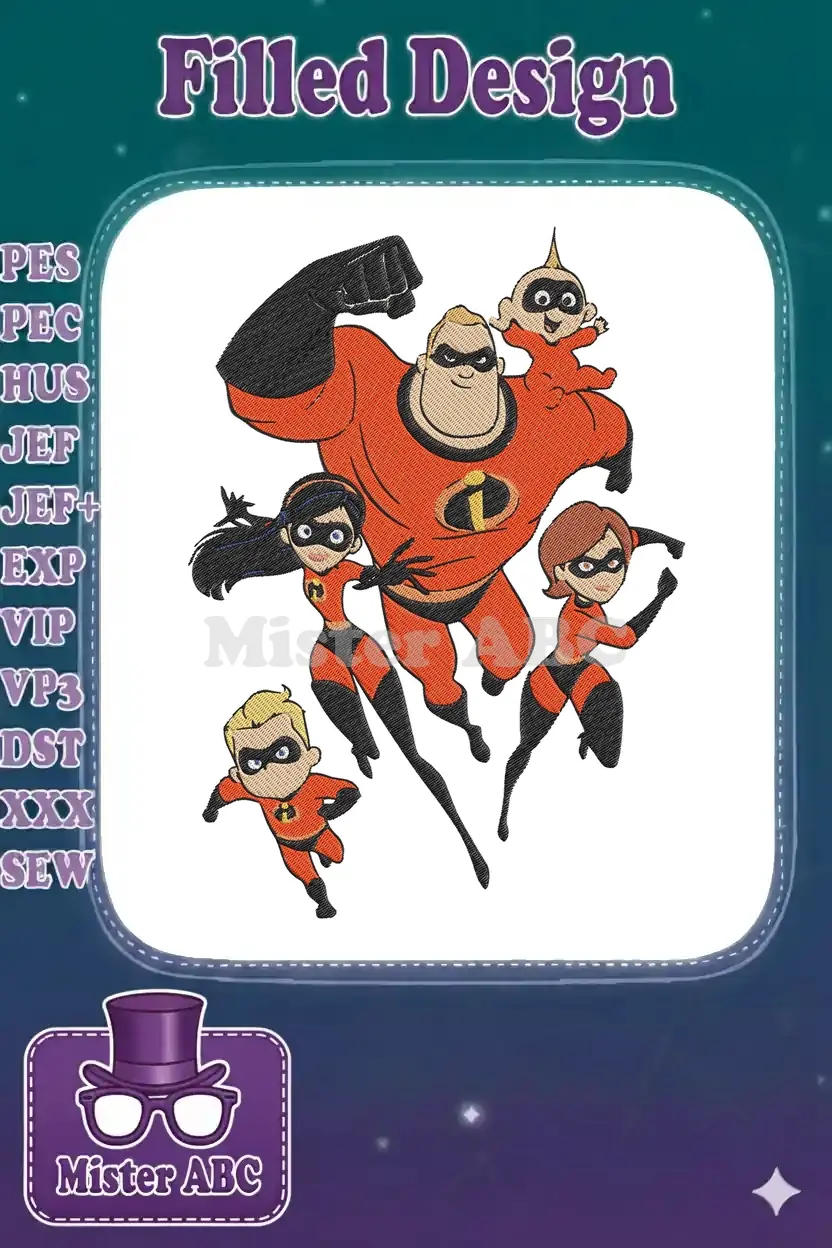 The Incredibles Family Superhero Cartoon Characters Embroidery Designs