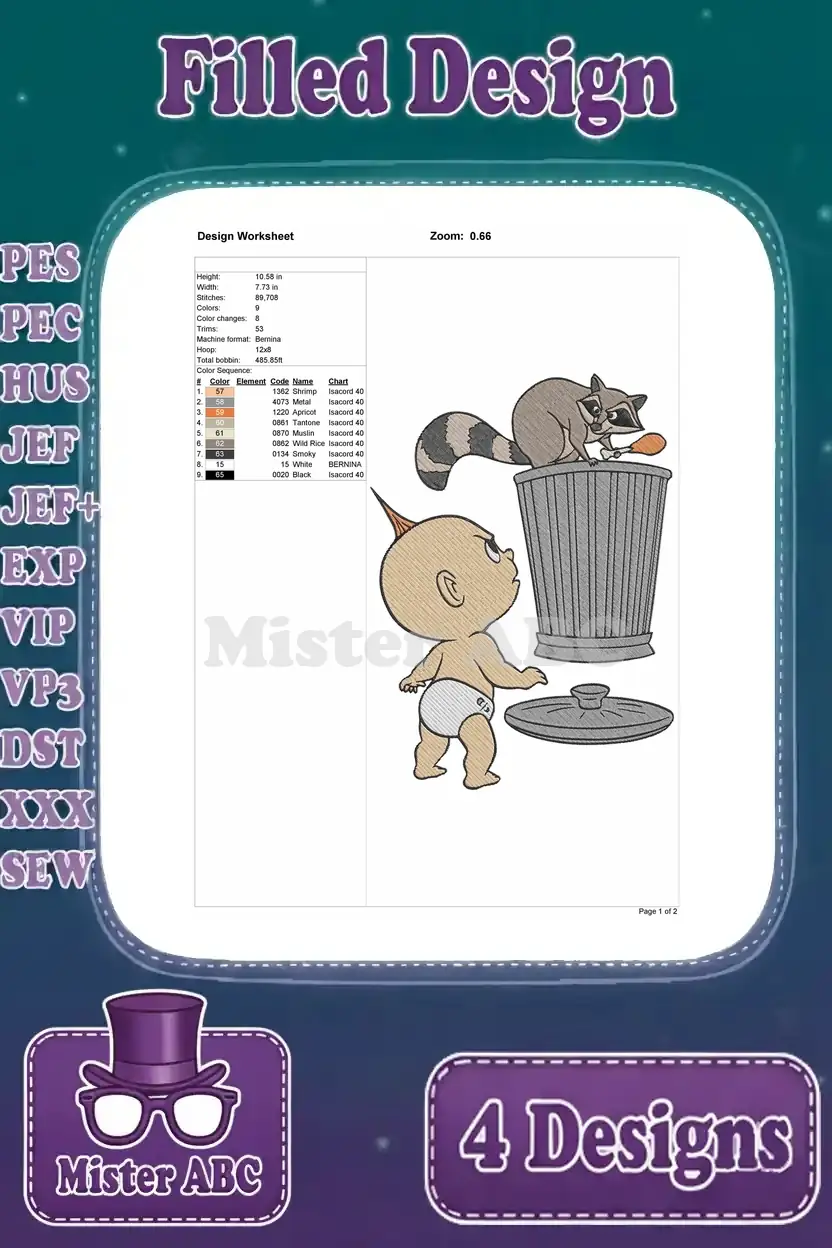 The Incredibles - Jack Jack Baby And Raccoon Fight - Edna Mode Selfie - Frozone Ice Power - Pixar - Filled Embroidery Design - Instant Download The Incredibles – Jack Jack Baby And Raccoon Fight – Edna Mode Selfie – Frozone Ice Power – Pixar – Filled Embroidery Design – Instant Download