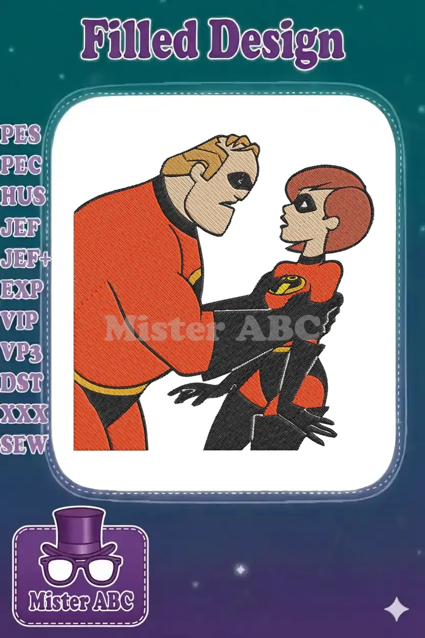 The Incredibles Mr Incredible Elastigirl Superhero Couple Embroidery Designs