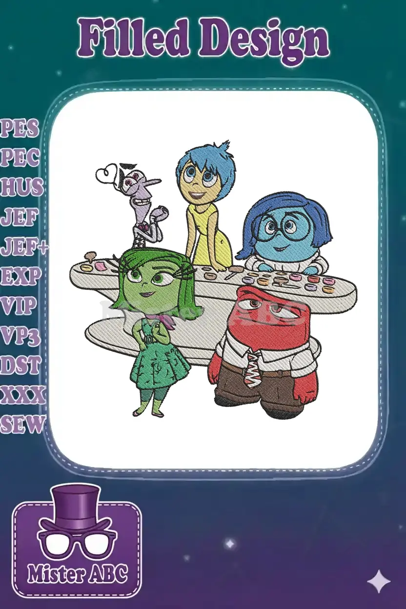 Inside Out movie emotions Joy Sadness Anger Disgust embroidery designs