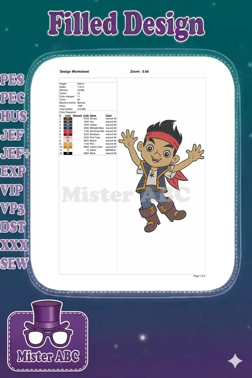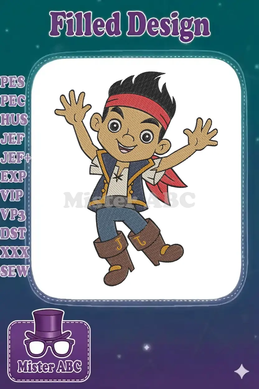 Jake Never Land Pirate Boy Cheerful Pose embroidery designs