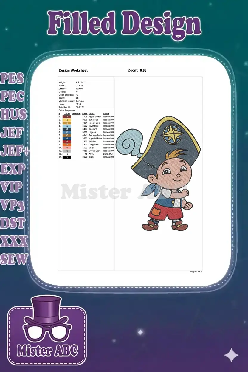Jake Never Land Pirate boy cartoon embroidery designs