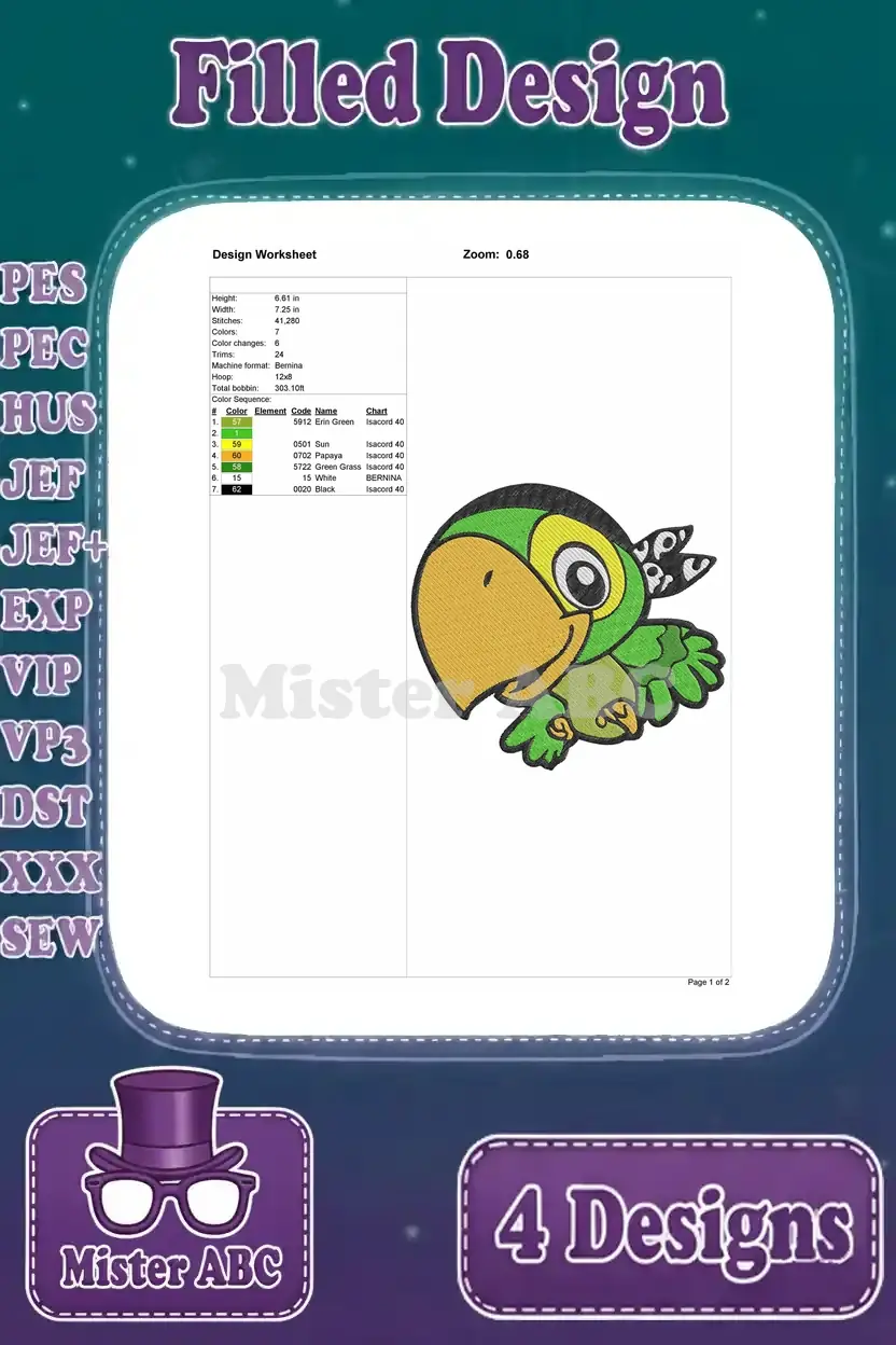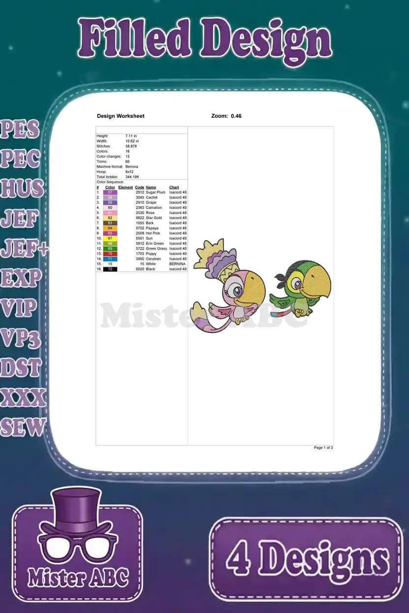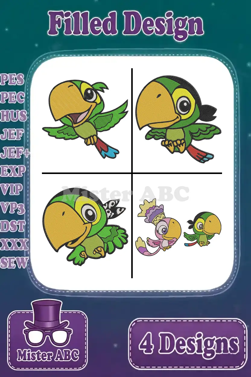 Jake And The Never Land Pirates Skully The Parrot And Izzy Various Poses – Filled Embroidery Design