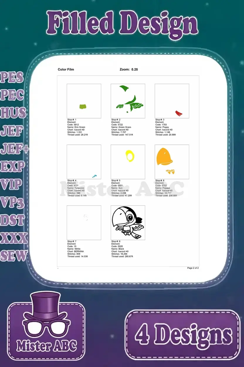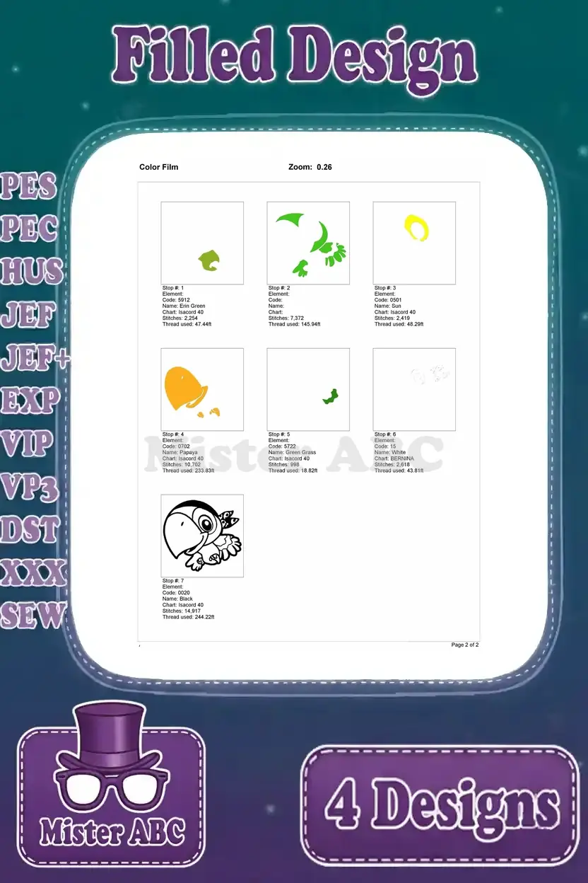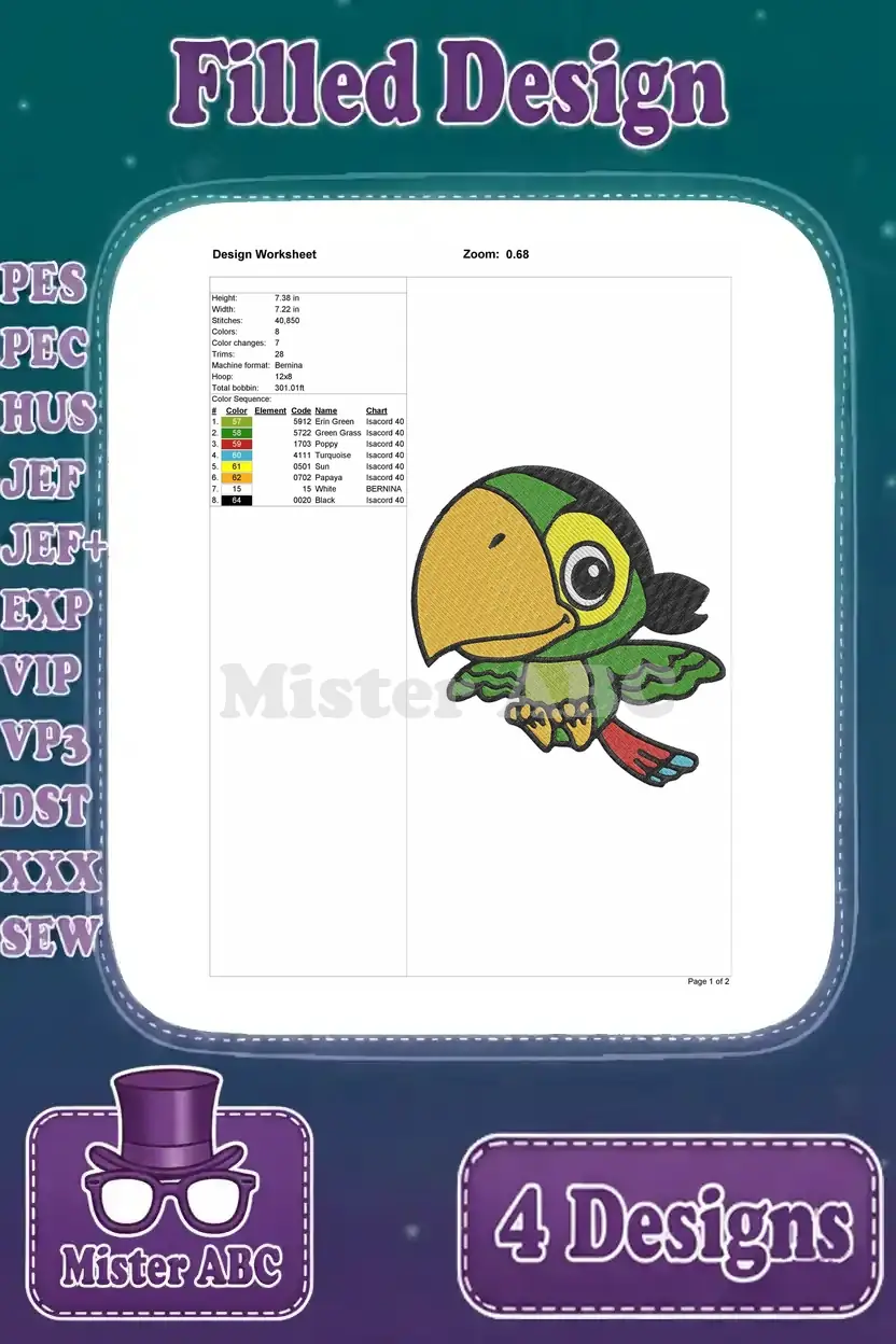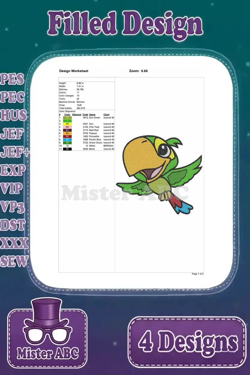 Jake And The Never Land Pirates Skully The Parrot And Izzy Various Poses – Filled Embroidery Design