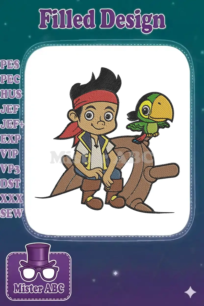 Jake and Skully Pirate Ship Wheel Cartoon Embroidery Designs