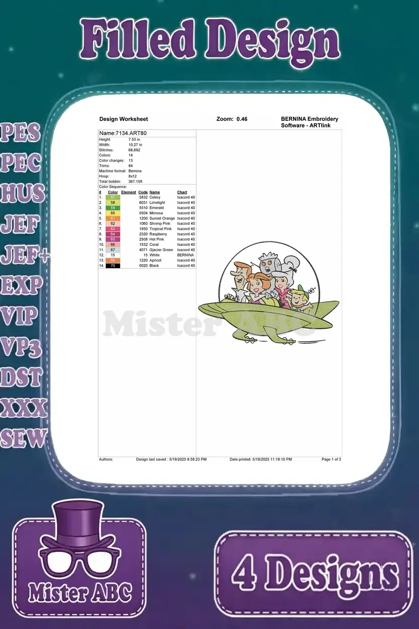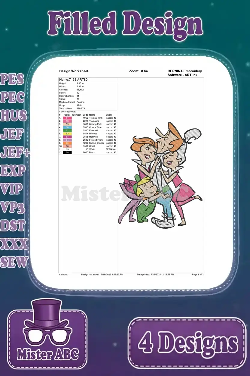 The Jetsons Family – George Jane Judy Elroy Astro Rosie And Mr Spacely Cogswell – Future Coon Group – Filled Embroidery Design