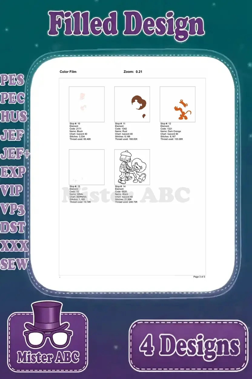 Jojos Circus Jojo Tickle Clown And Goliath The Lion Interactive Friendship Poses - Filled Embroidery Design - Instant Download Jojos Circus Jojo Tickle Clown And Goliath The Lion Interactive Friendship Poses – Filled Embroidery Design – Instant Download