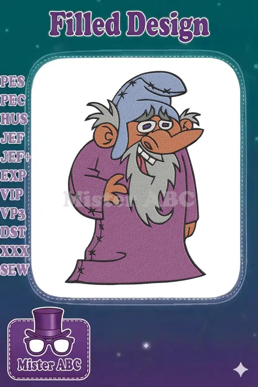 Jolly old wizard with blue hat and purple robe embroidery designs