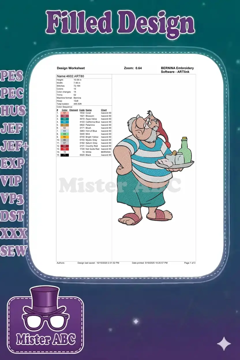 Jovial Cartoon Sailor Man Holding Drinks Tray Embroidery Designs - Instant Download Jovial Cartoon Sailor Man Holding Drinks Tray Embroidery Designs – Instant Download