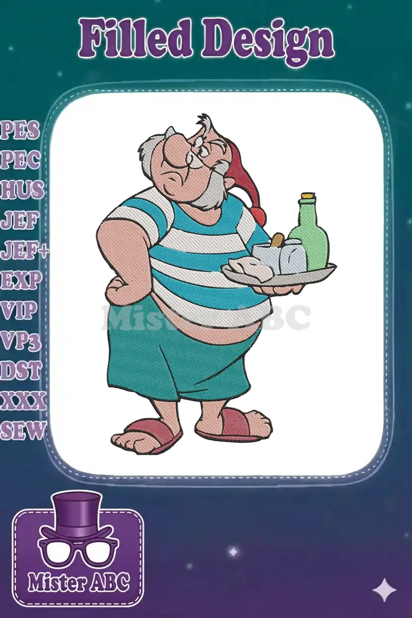 Jovial Cartoon Sailor Man Holding Drinks Tray Embroidery Designs – Instant Download