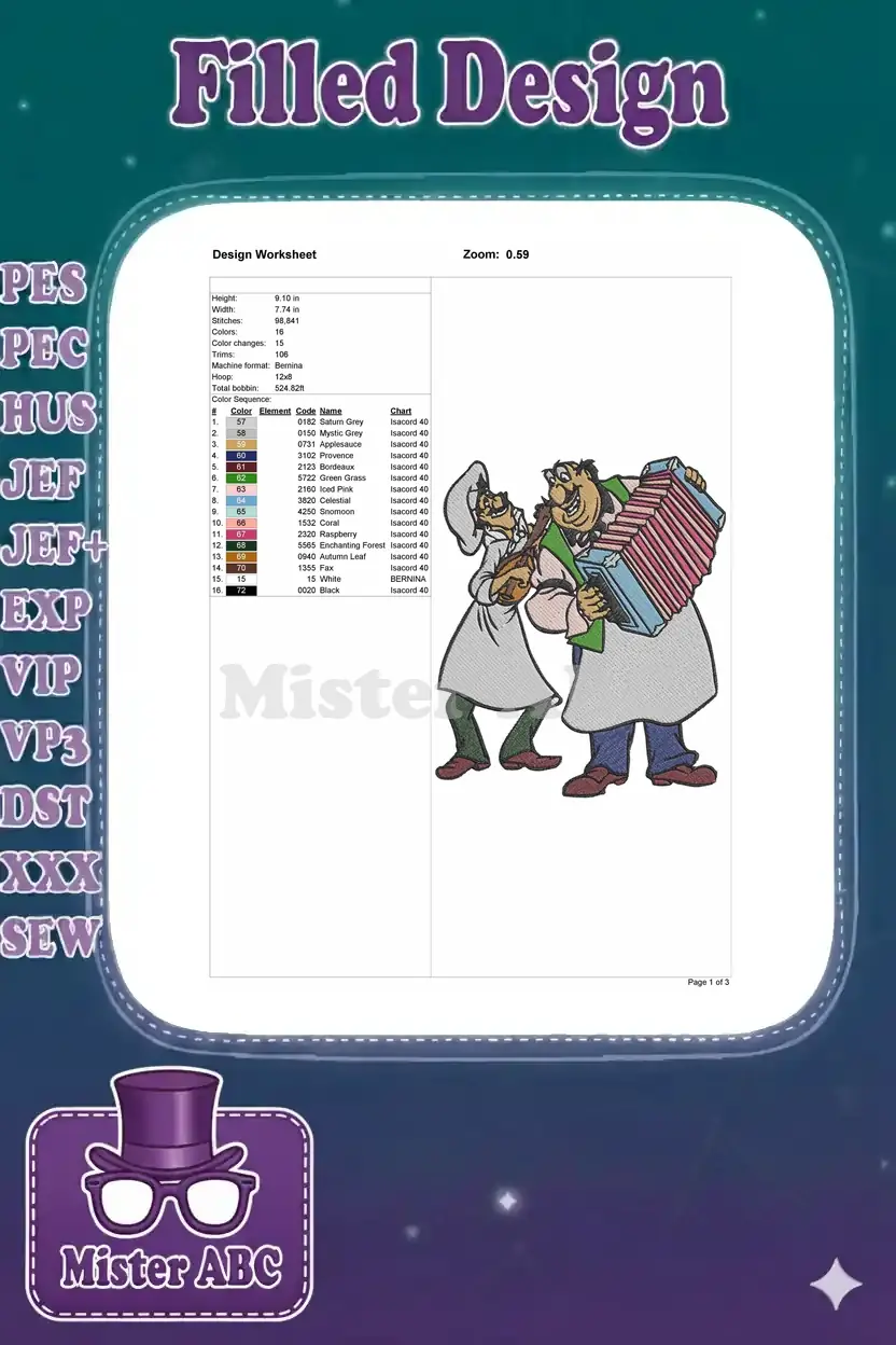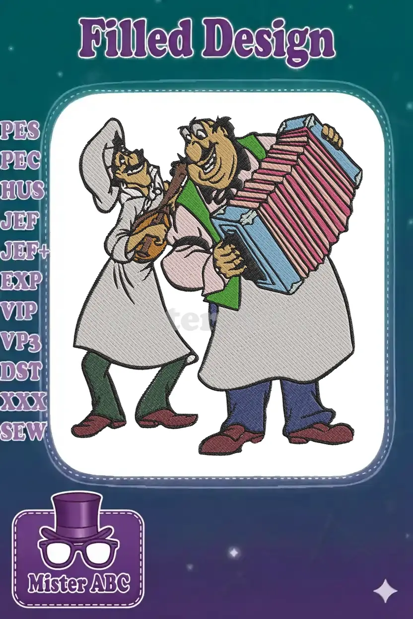 Joyful cartoon musicians with accordion and mandolin funny embroidery designs – Instant Download