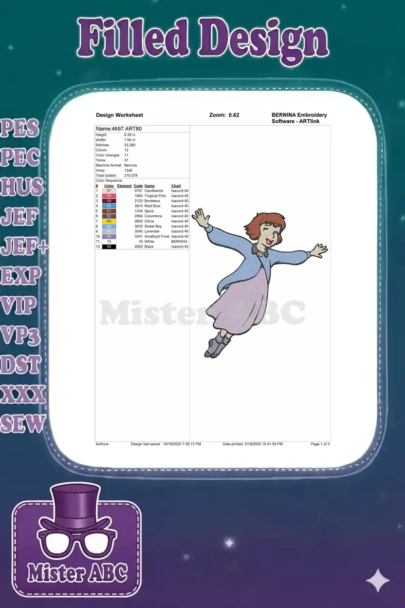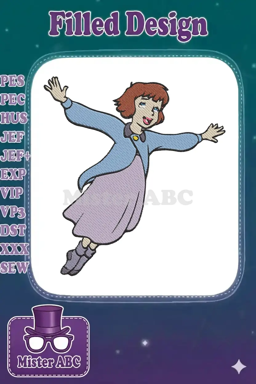 Joyful Flying Cartoon Girl Character Embroidery Designs – Instant Download