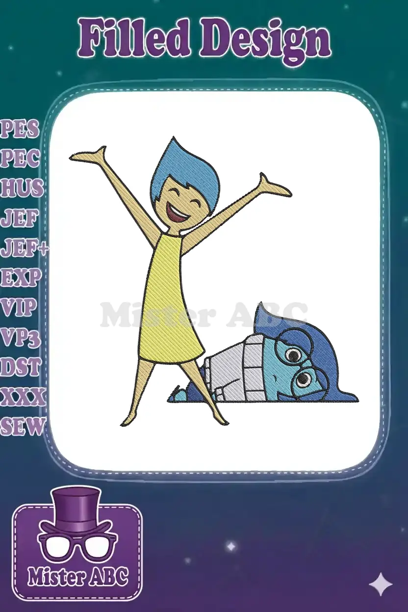 Joyful Joy and Sad Sadness Inside Out embroidery designs – Instant Download