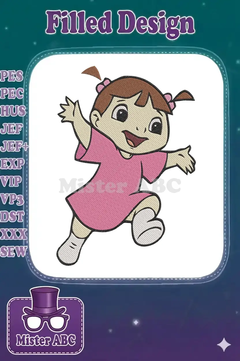 Joyful little girl running cartoon character embroidery designs