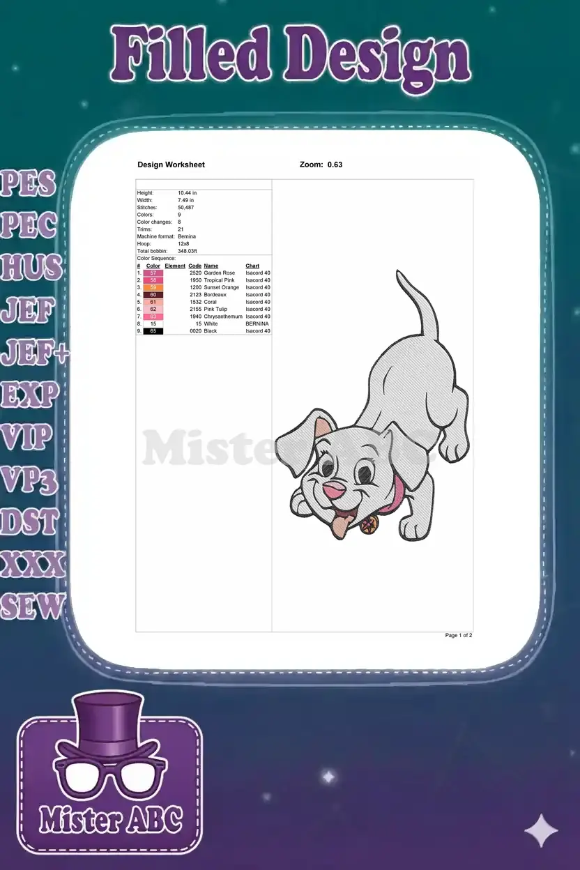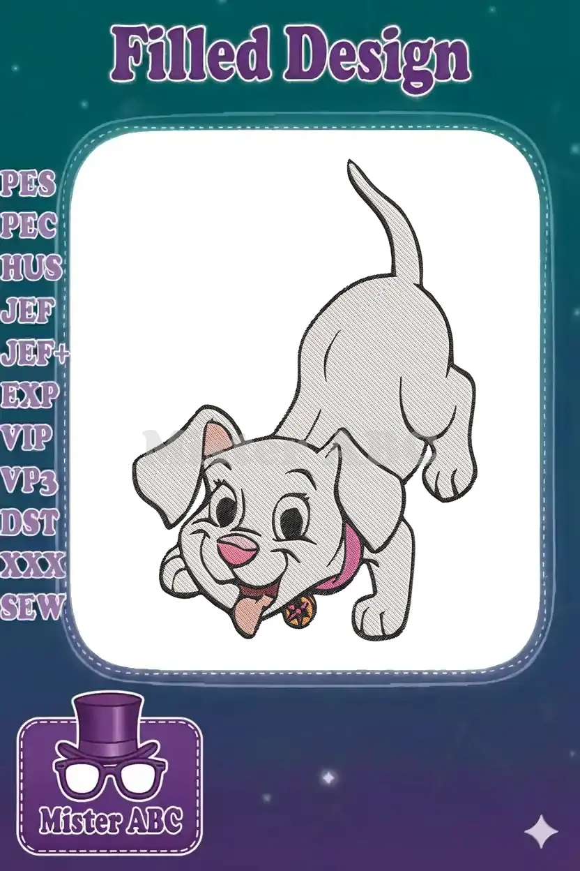 Joyful white puppy dog playful pose embroidery designs for kids