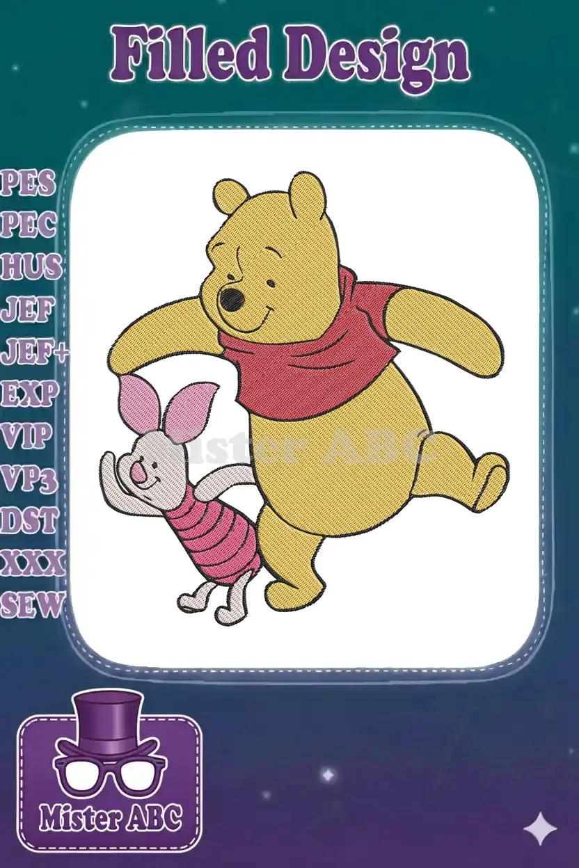 Joyful Winnie the Pooh and Piglet walking friendship embroidery designs