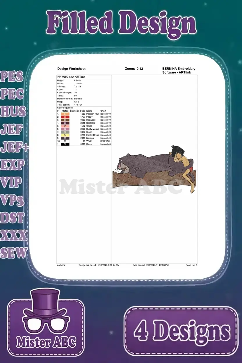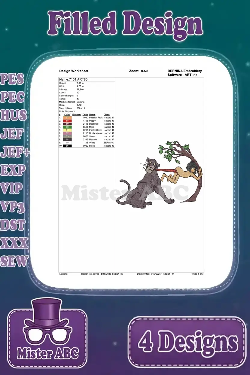 The Jungle Book – Bagheera The Panther And Mowgli The Man Cub – Jungle Protector And Boy Adventure Scenes – Filled Embroidery Design