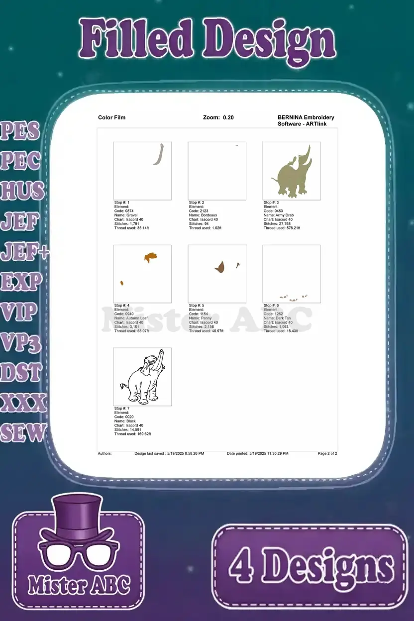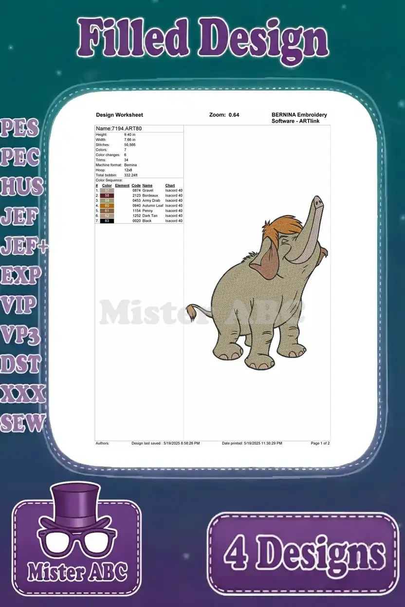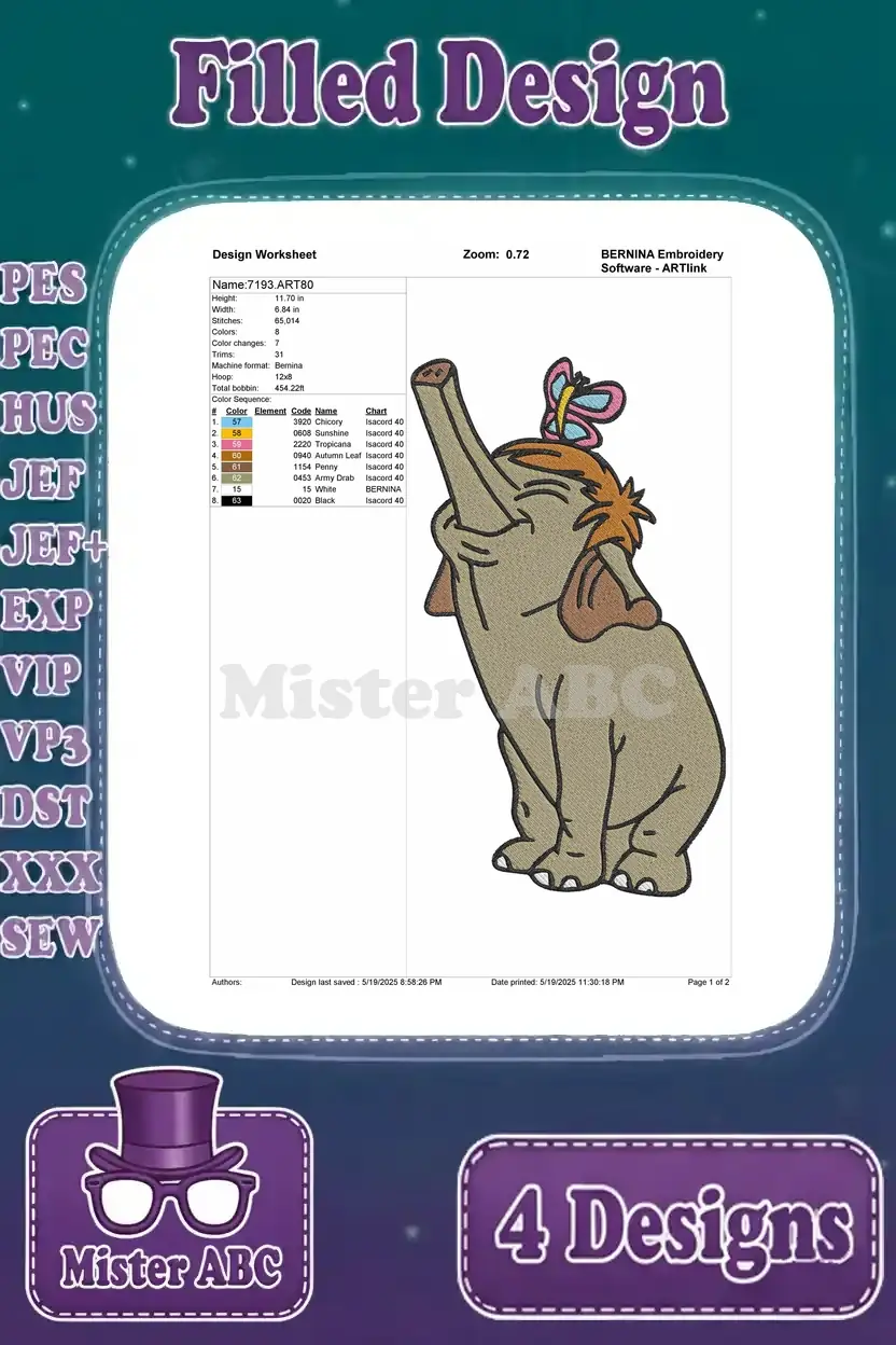 The Jungle Book – Colonel Hathi And Baby Elephant Hathi Jr – Elephant March Parade In The Jungle – Filled Embroidery Design