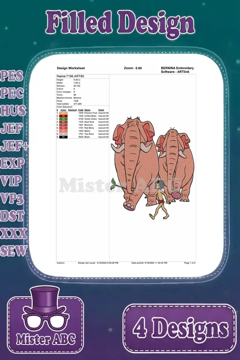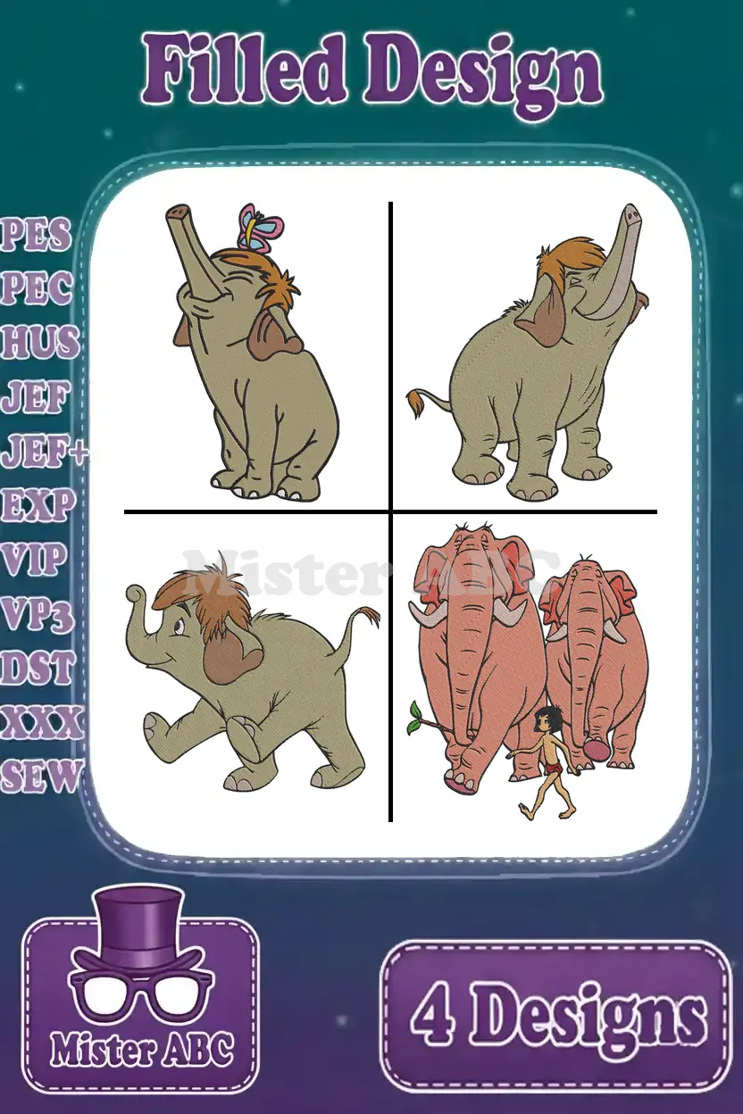 Capture the spirit of the jungle with this delightful embroidery bundle! Features Hathi Jr., Mowgli, and charming elephants.