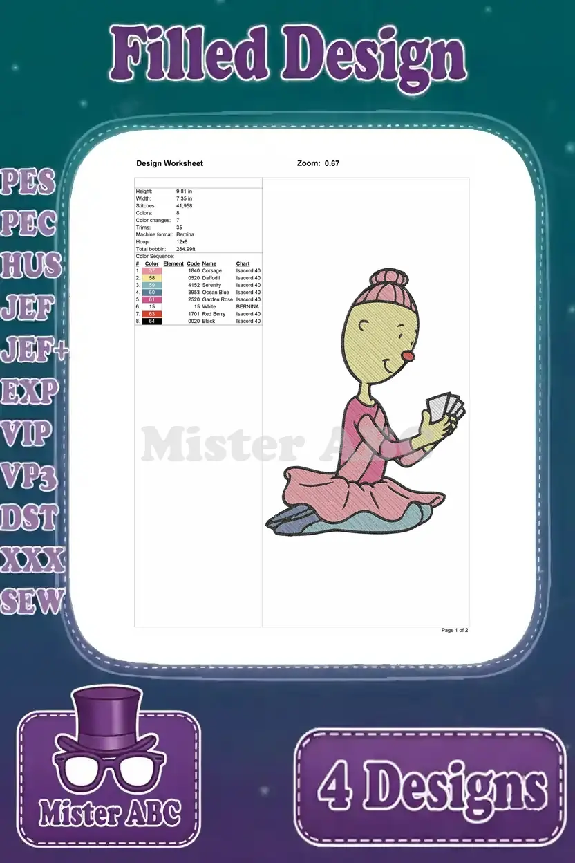 Jungle Book And Friends Shanti Ballerina And Old Man Character Assortment – Filled Embroidery Design