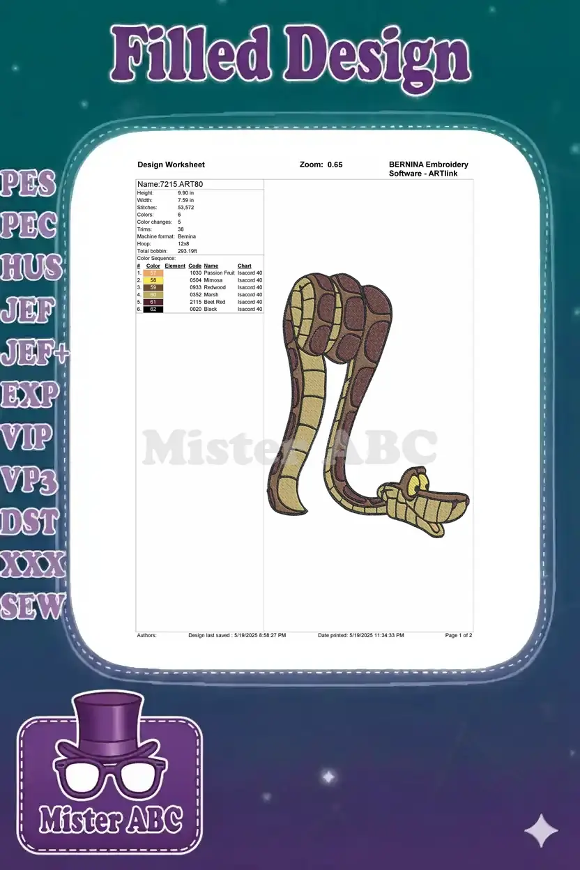 Jungle Book Kaa snake cartoon character embroidery designs