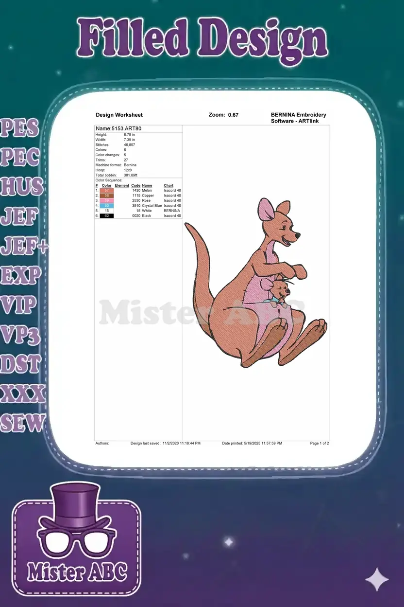 Kanga and Roo Winnie the Pooh cartoon embroidery designs