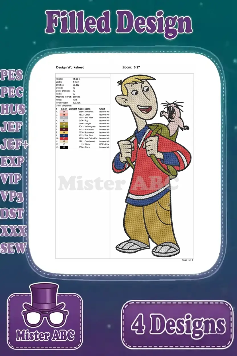 Kim Possible Ron Stoppable Dr Drakken Duff Killigan And Monkey Fist Villains – Filled Embroidery Design