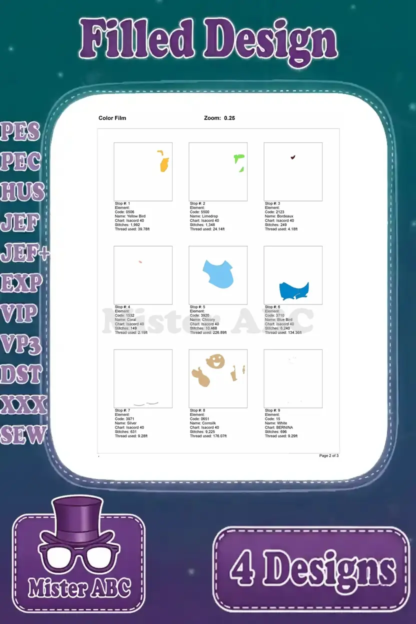 | Stitches | Colors | Thread Changes |
