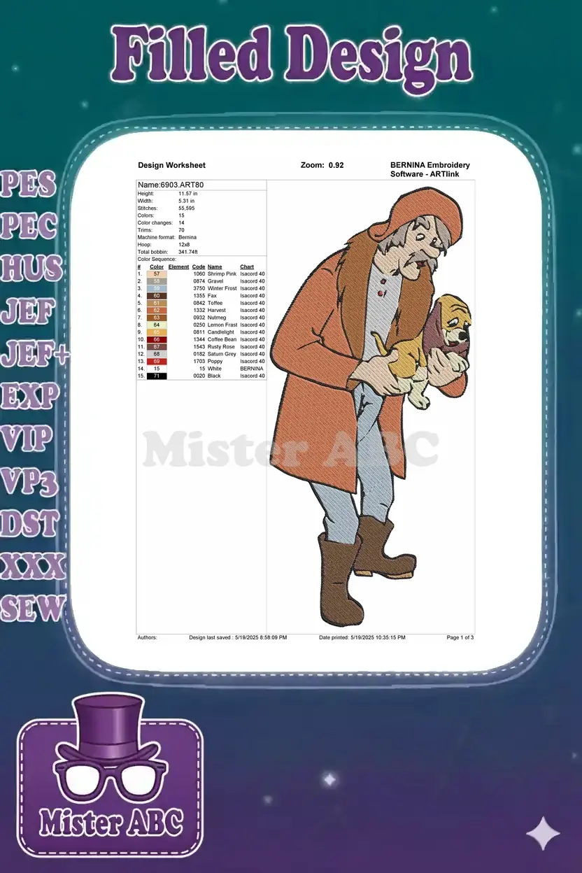 Capture heartwarming Disney magic with this charming embroidery design featuring Joe and a playful pup. Perfect for fans!