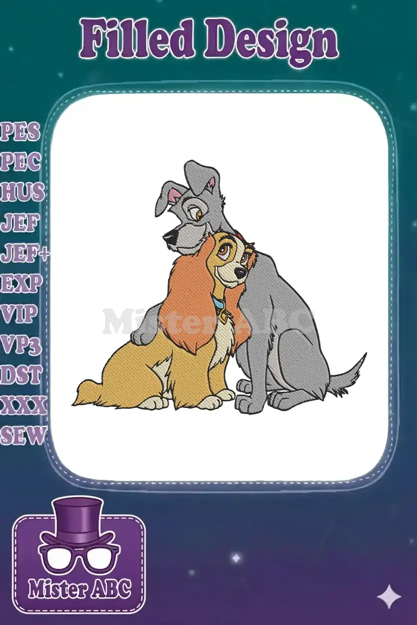 Lady and Tramp Disney Dogs Embrace Embroidery Designs