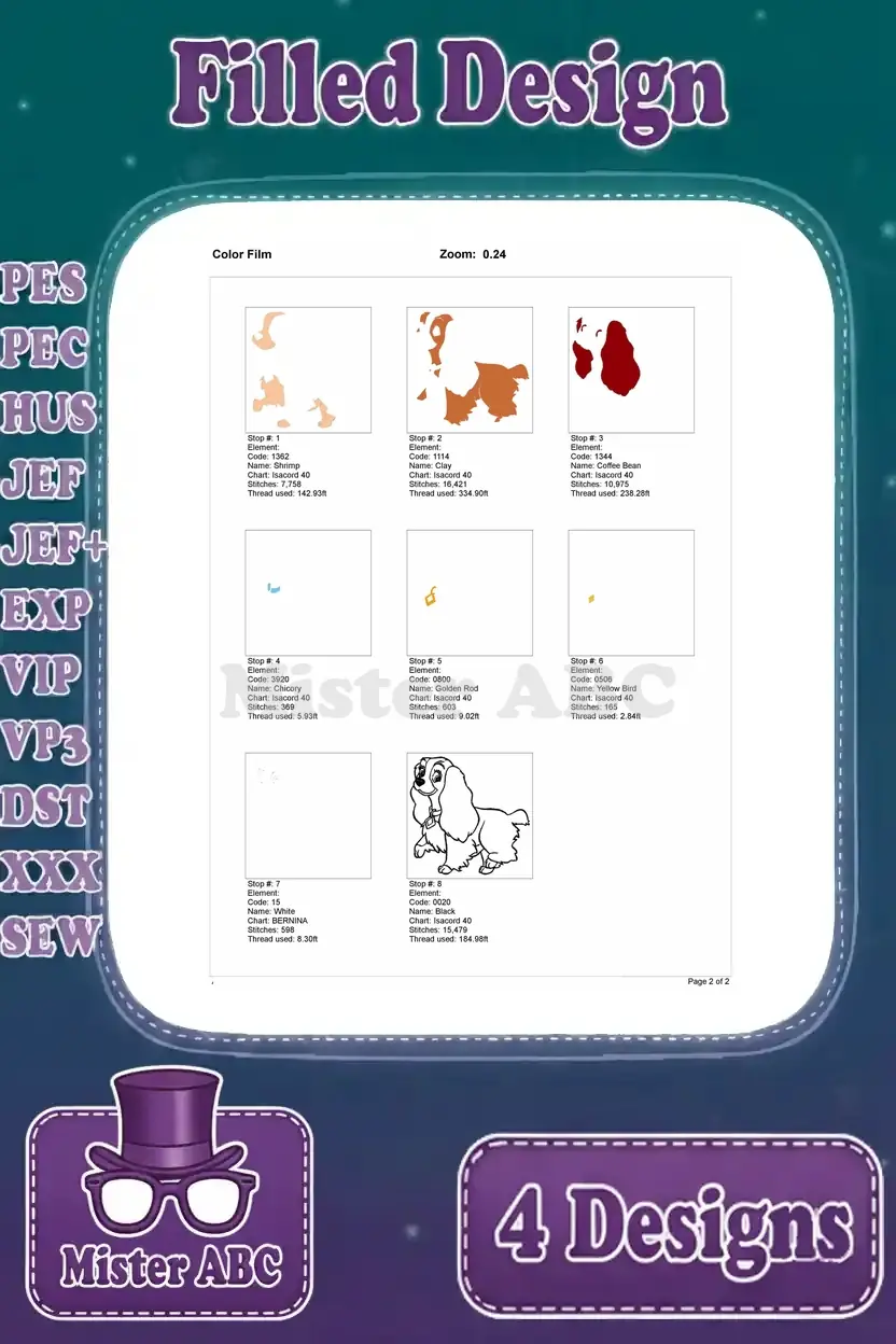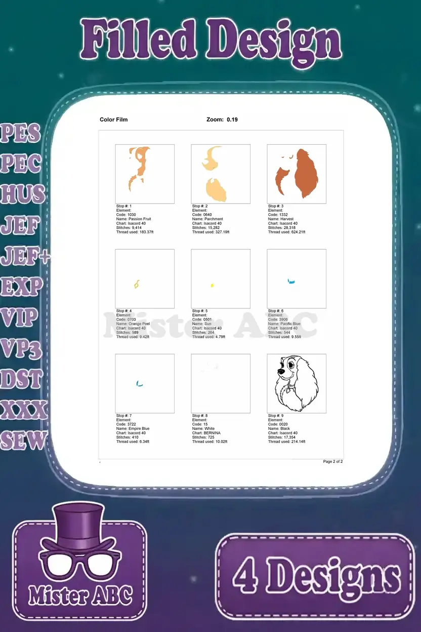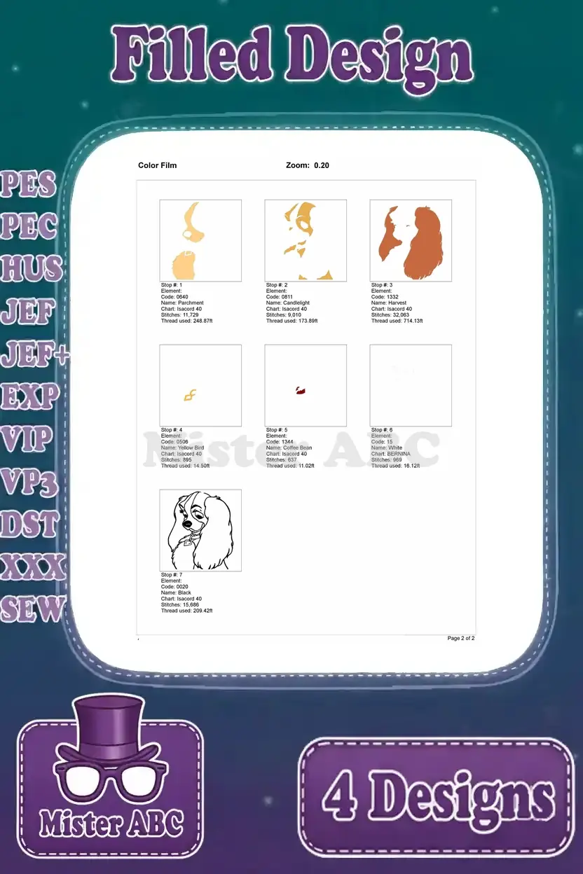 Lady And The Tramp - Lady The Graceful Cocker Spaniel - Multiple Poses - Disney Animation - Filled Embroidery Design - Instant Download Lady And The Tramp – Lady The Graceful Cocker Spaniel – Multiple Poses – Disney Animation – Filled Embroidery Design – Instant Download