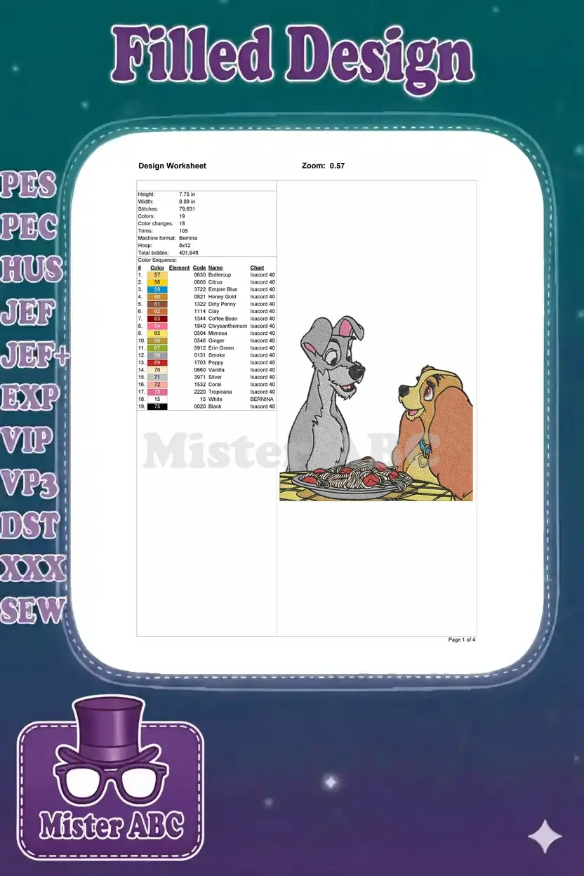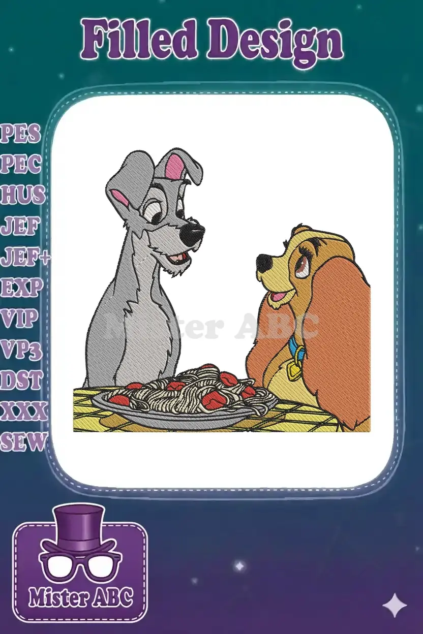 Lady and Tramp Romantic Spaghetti Dinner Embroidery Designs