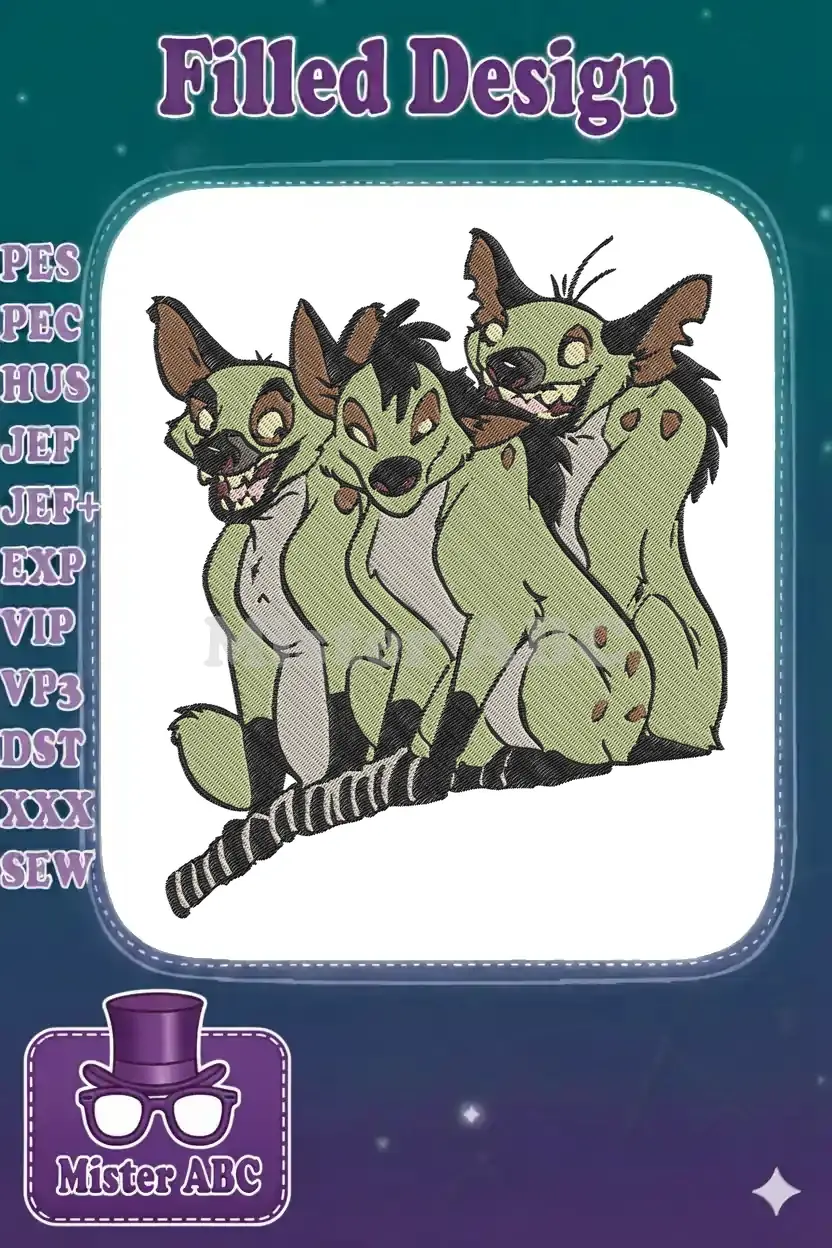 Laughing hyena trio wild animal embroidery designs