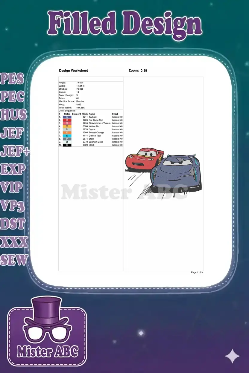 Lightning McQueen Jackson Storm racing cars embroidery designs