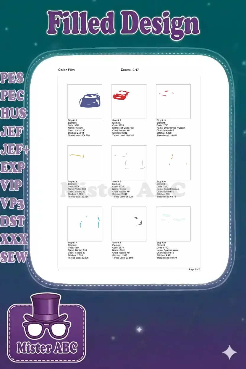| Stitches | Colors | Thread Changes |