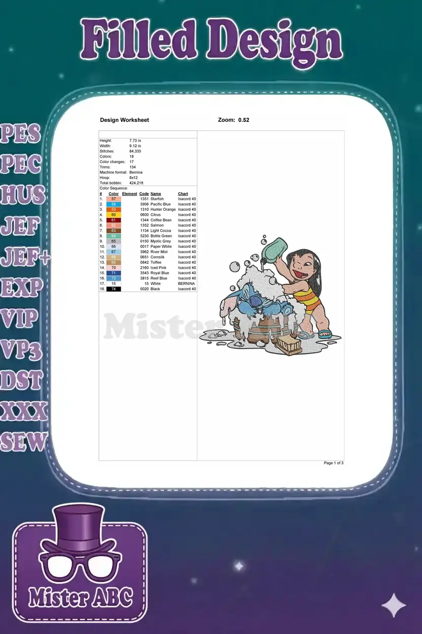 Lilo and Stitch fun bath time embroidery designs with bubbles