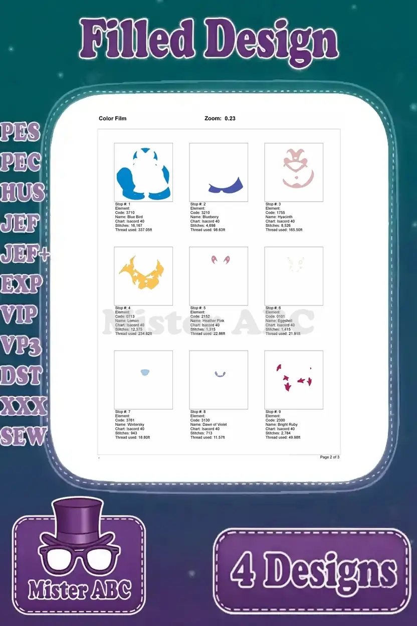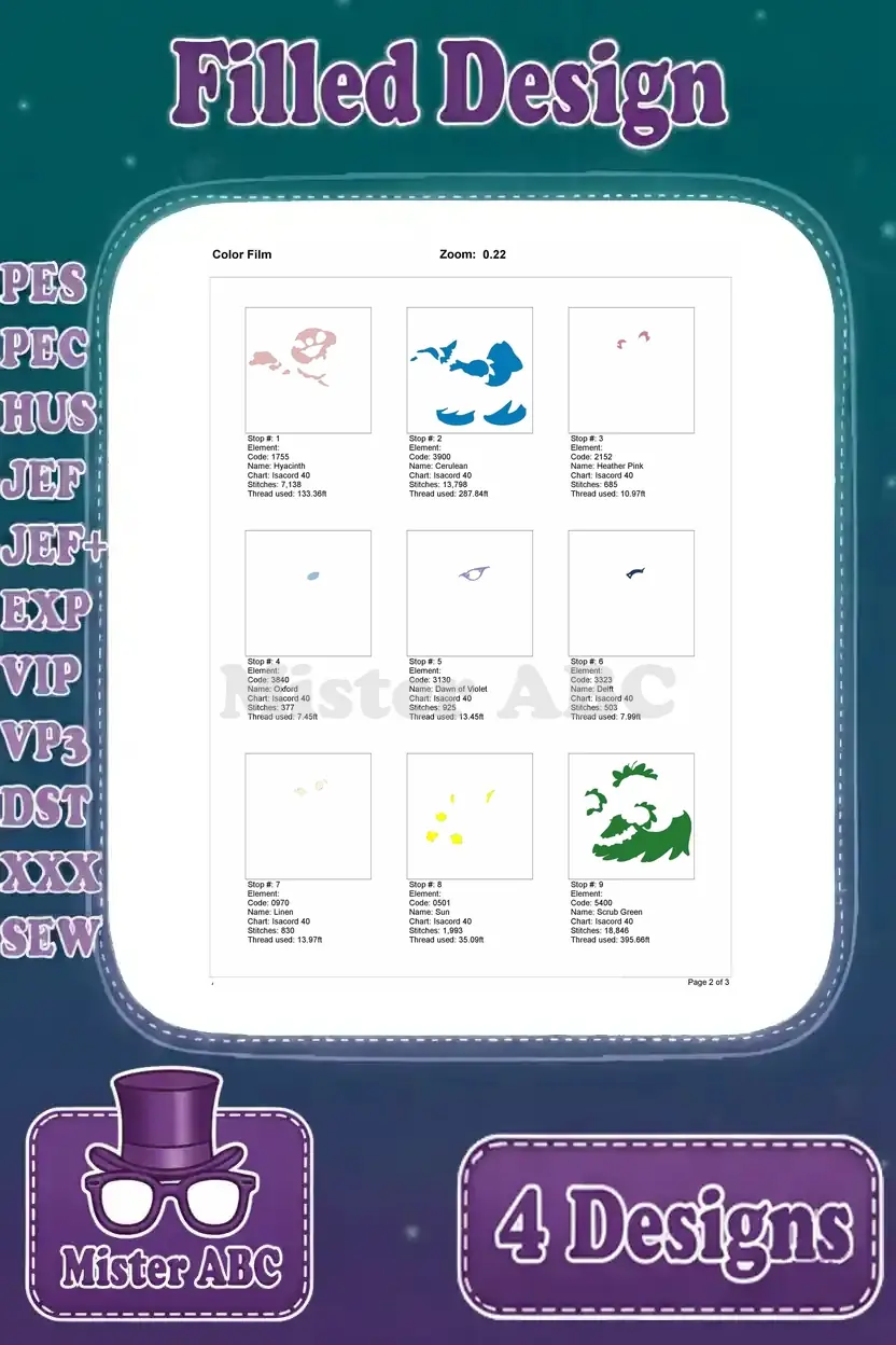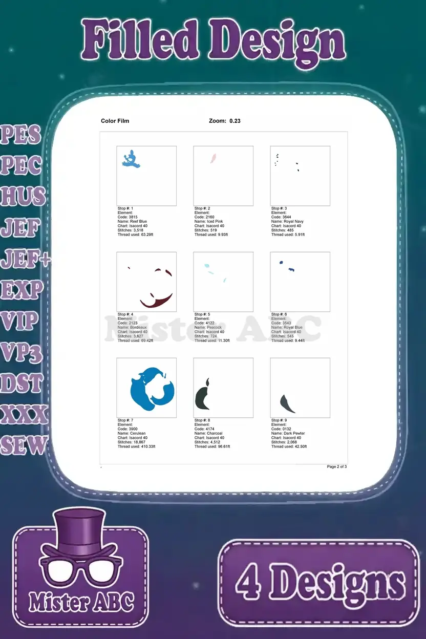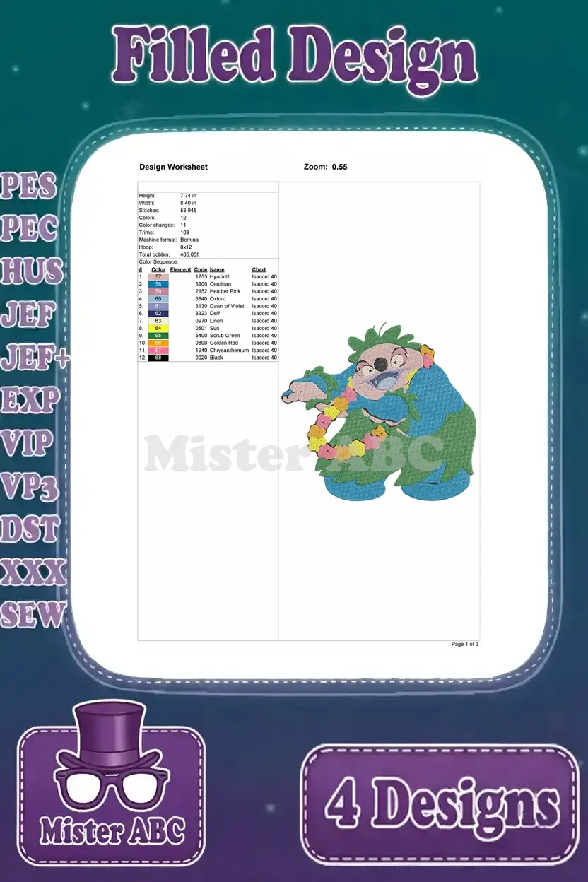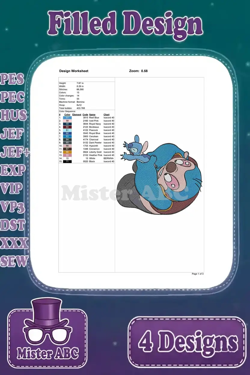 Lilo And Stitch – Stitch And Angel With Flower Lei – Gantu – Hamsterviel – Ohana And Experiments – Filled Embroidery Design