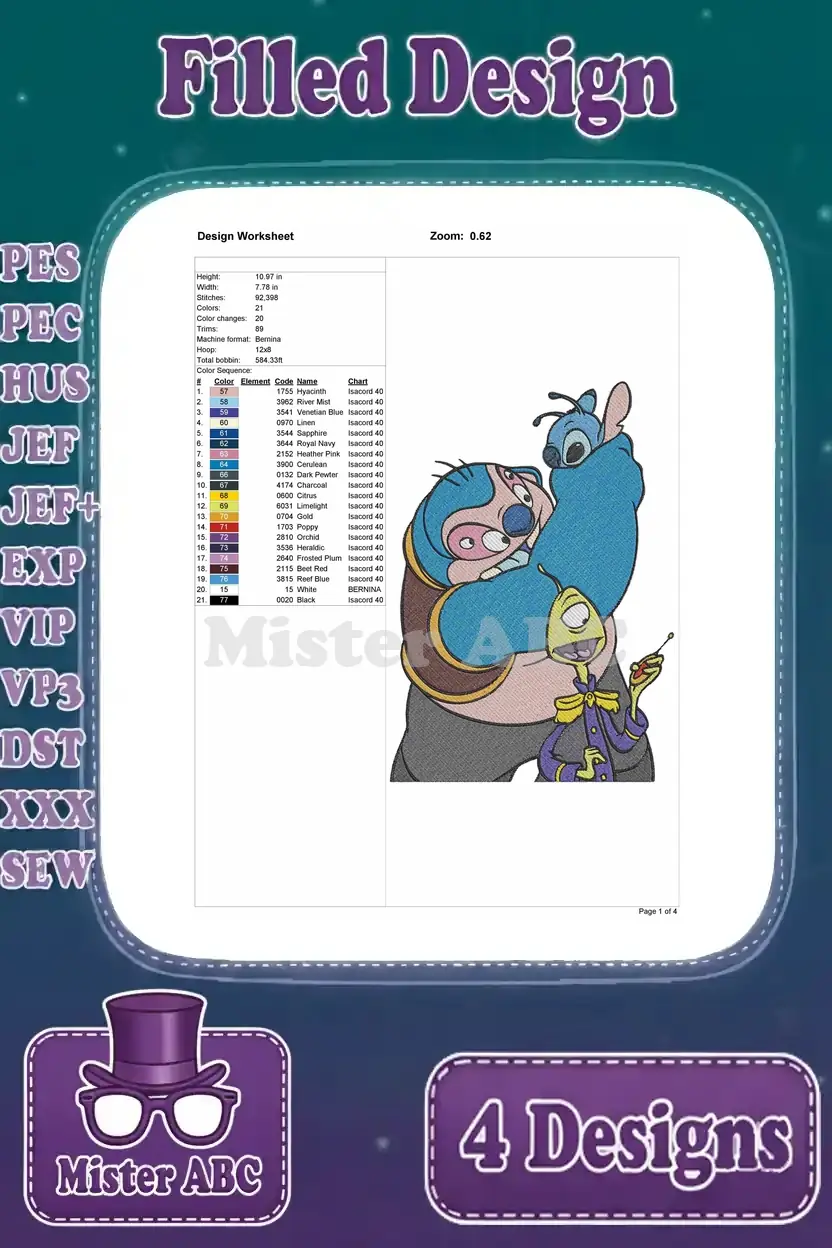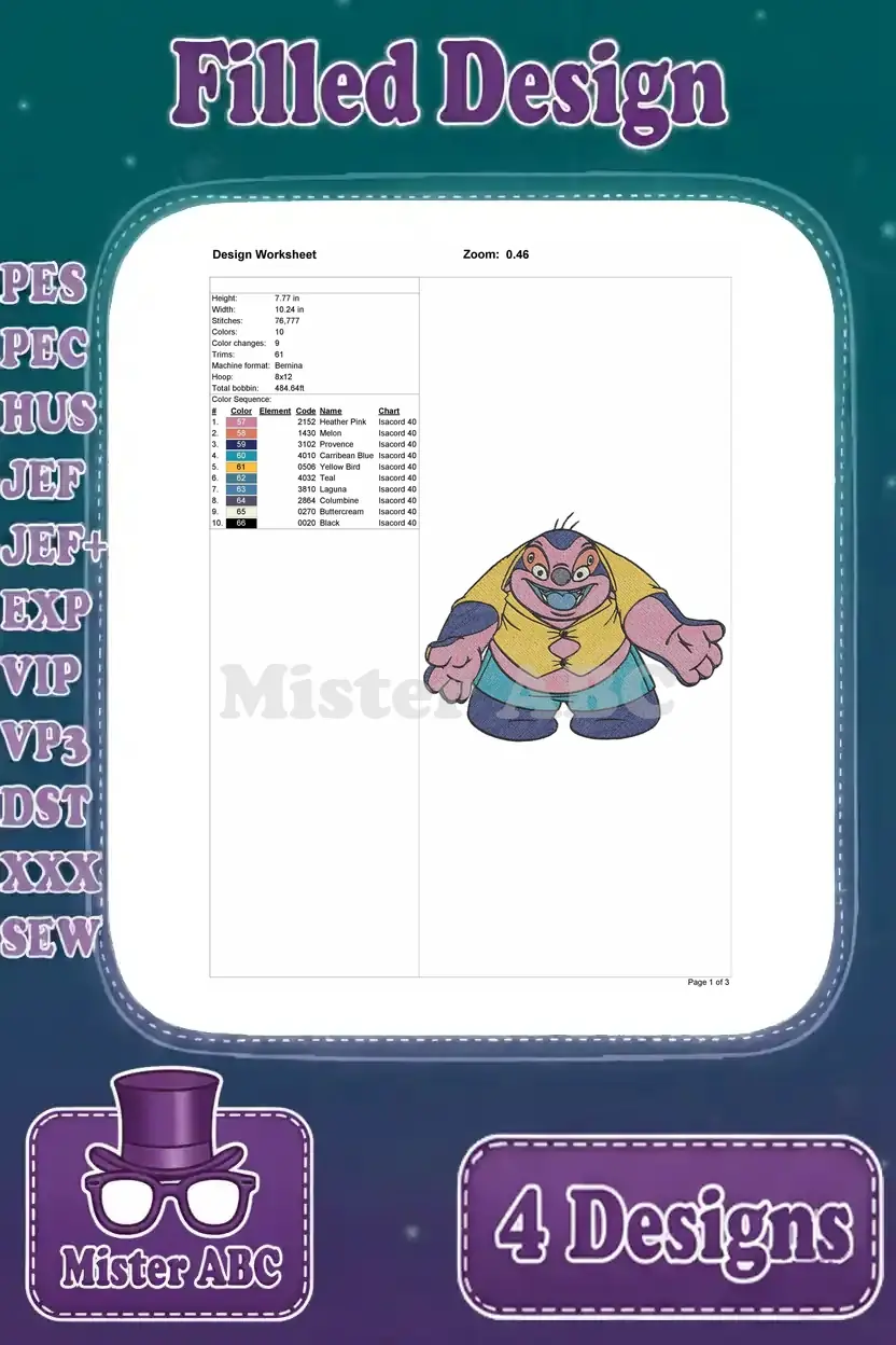 Lilo And Stitch - Stitch Ice Cream - Captain Gantu - Dr Hamsterviel With Stitch - Villains And Hero - Filled Embroidery Design - 3642