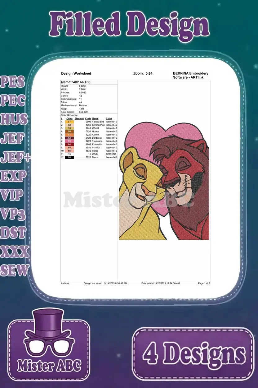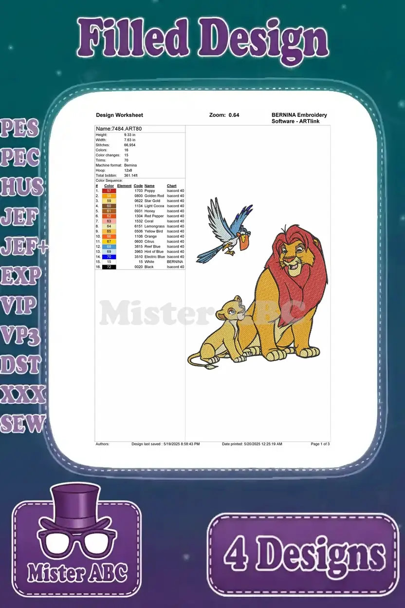 Embrace the savanna with this enchanting 4-design Lion King embroidery bundle, perfect for fans of all ages!