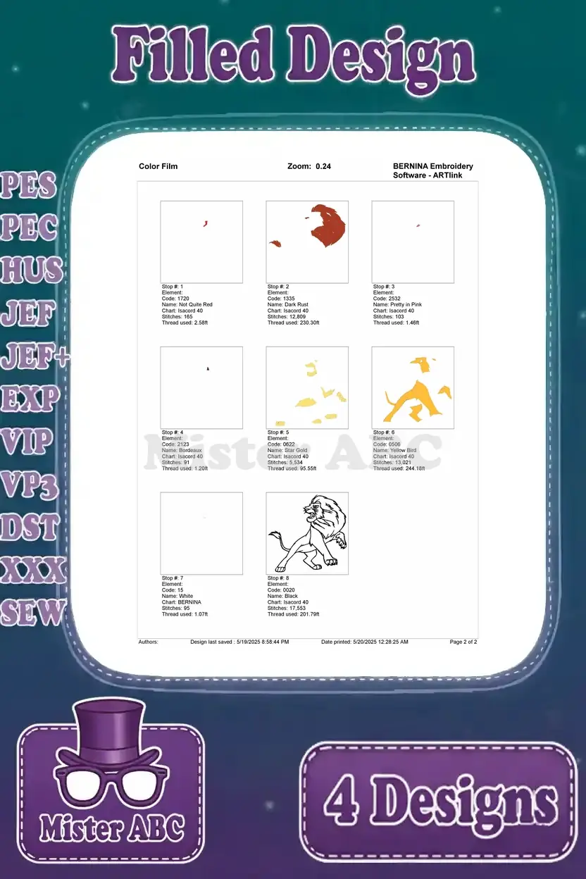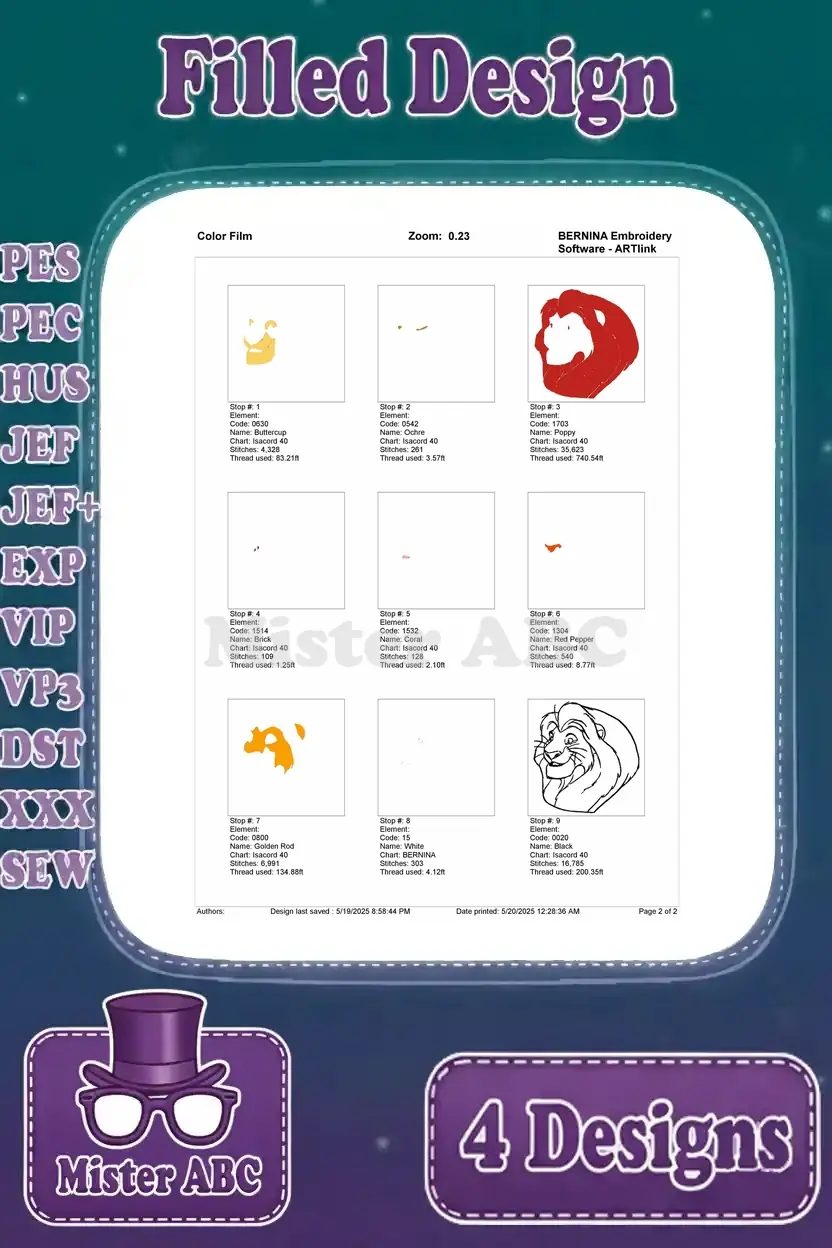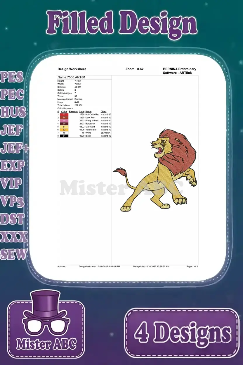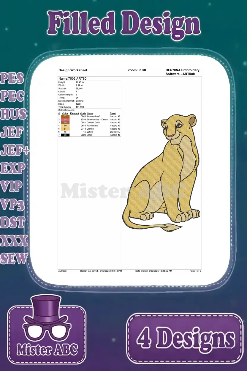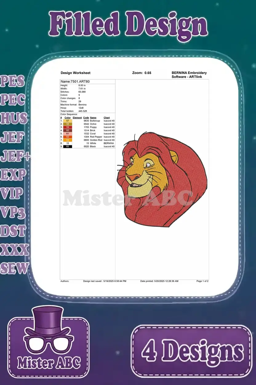 The Lion King – Adult Simba With Rafiki And Nala – King Portrait And Queen Nala Portrait – Royal Family And Friend – Filled Embroidery Design