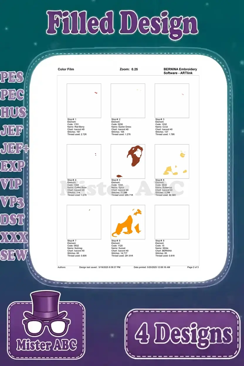 The Lion King Mufasa King Of Pride Rock Roaring Standing And Walking Poses – Filled Embroidery Design