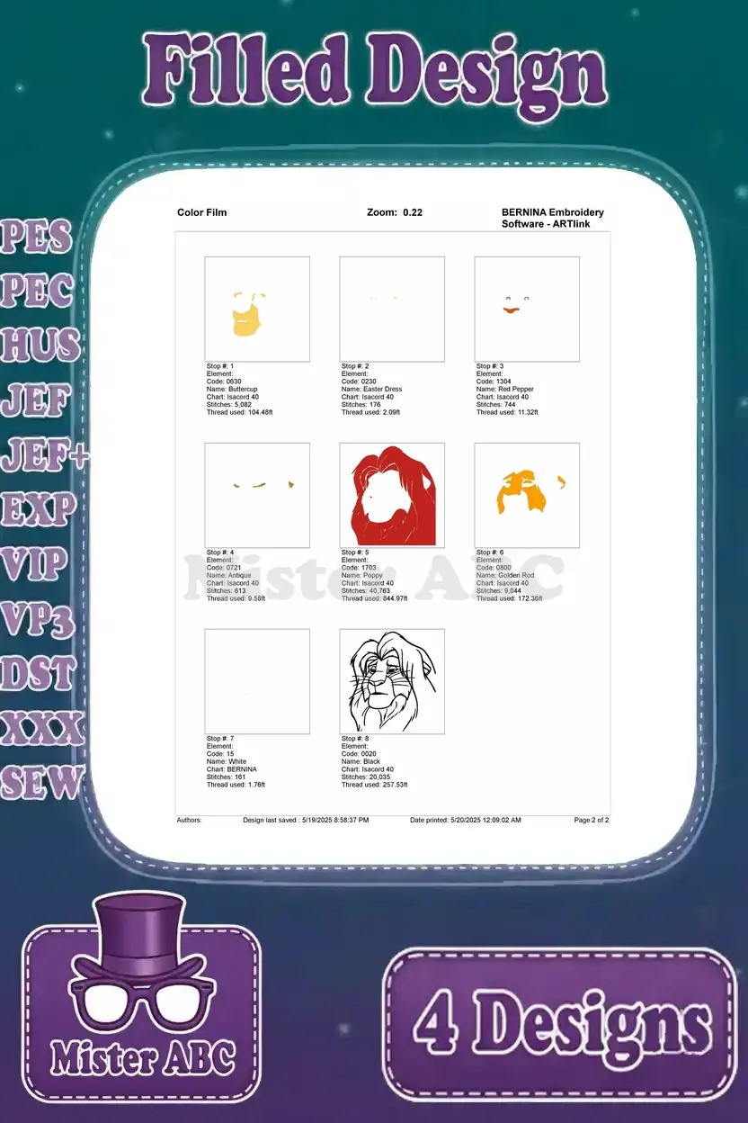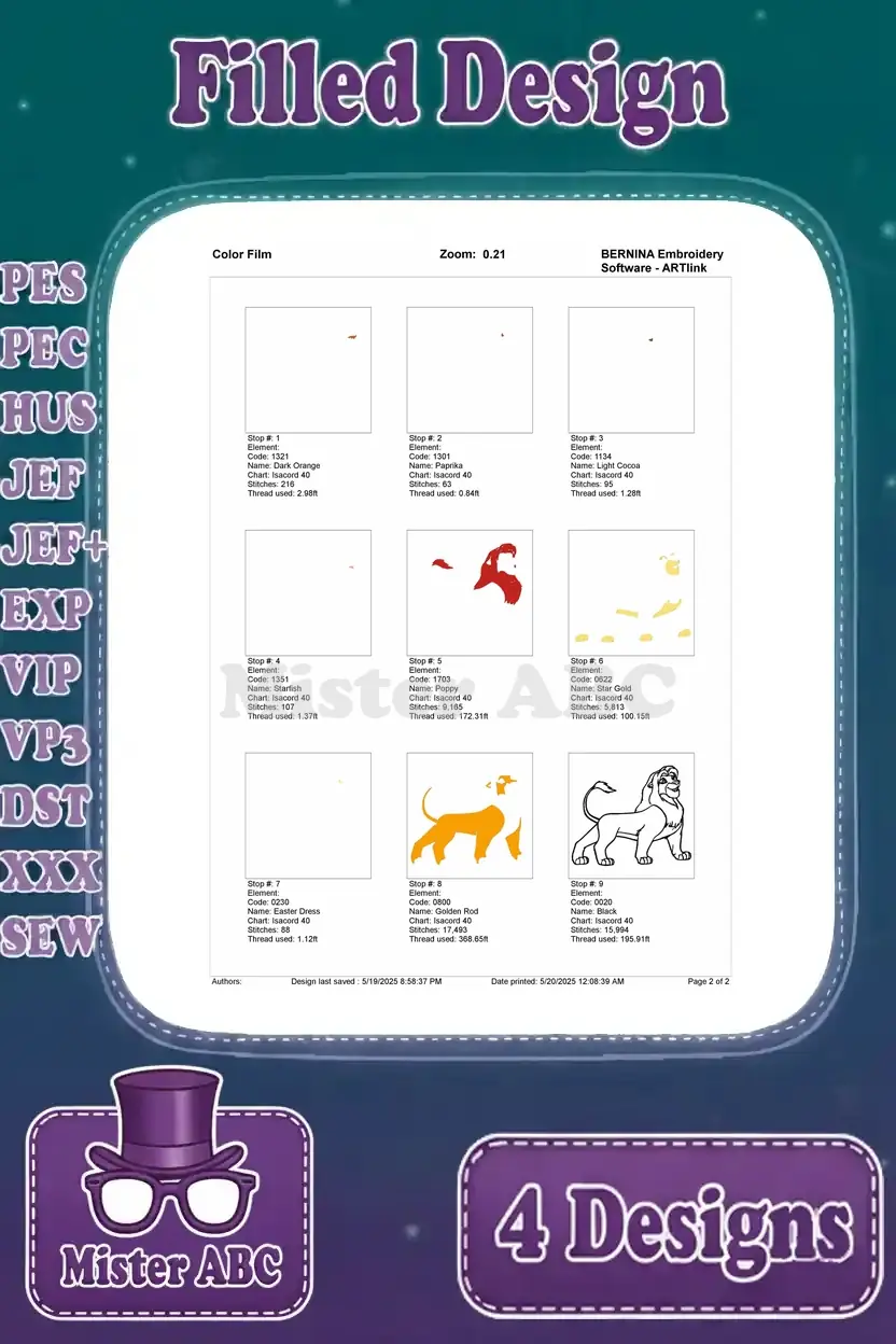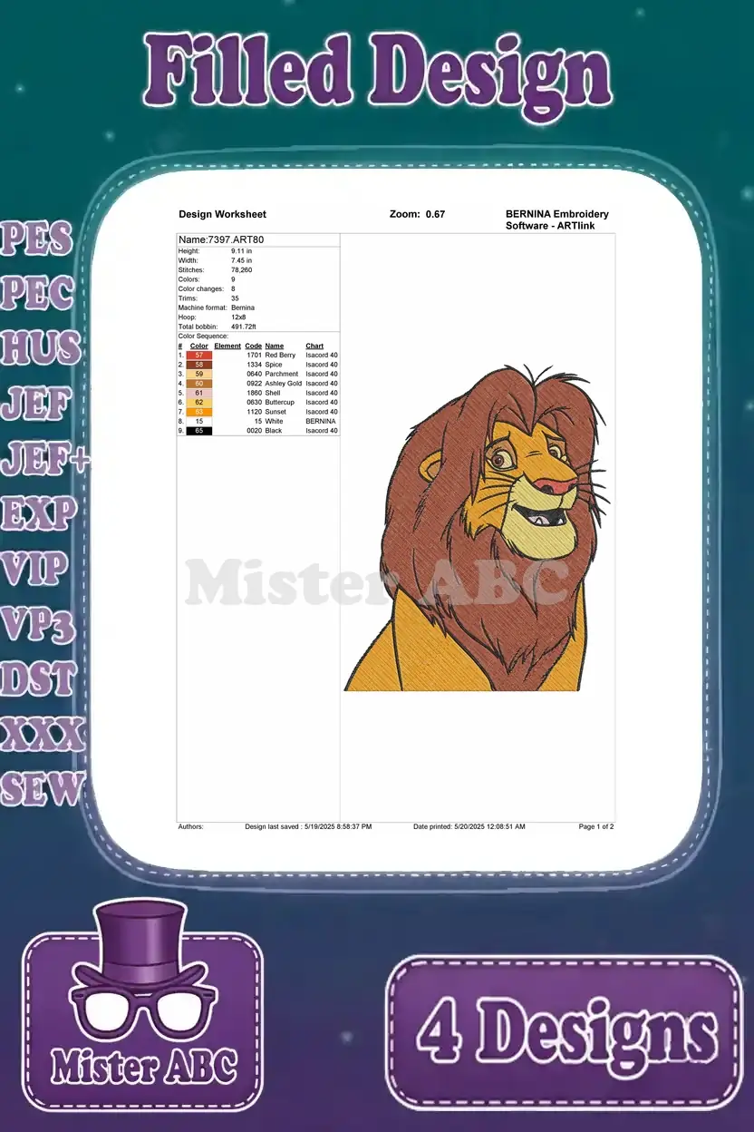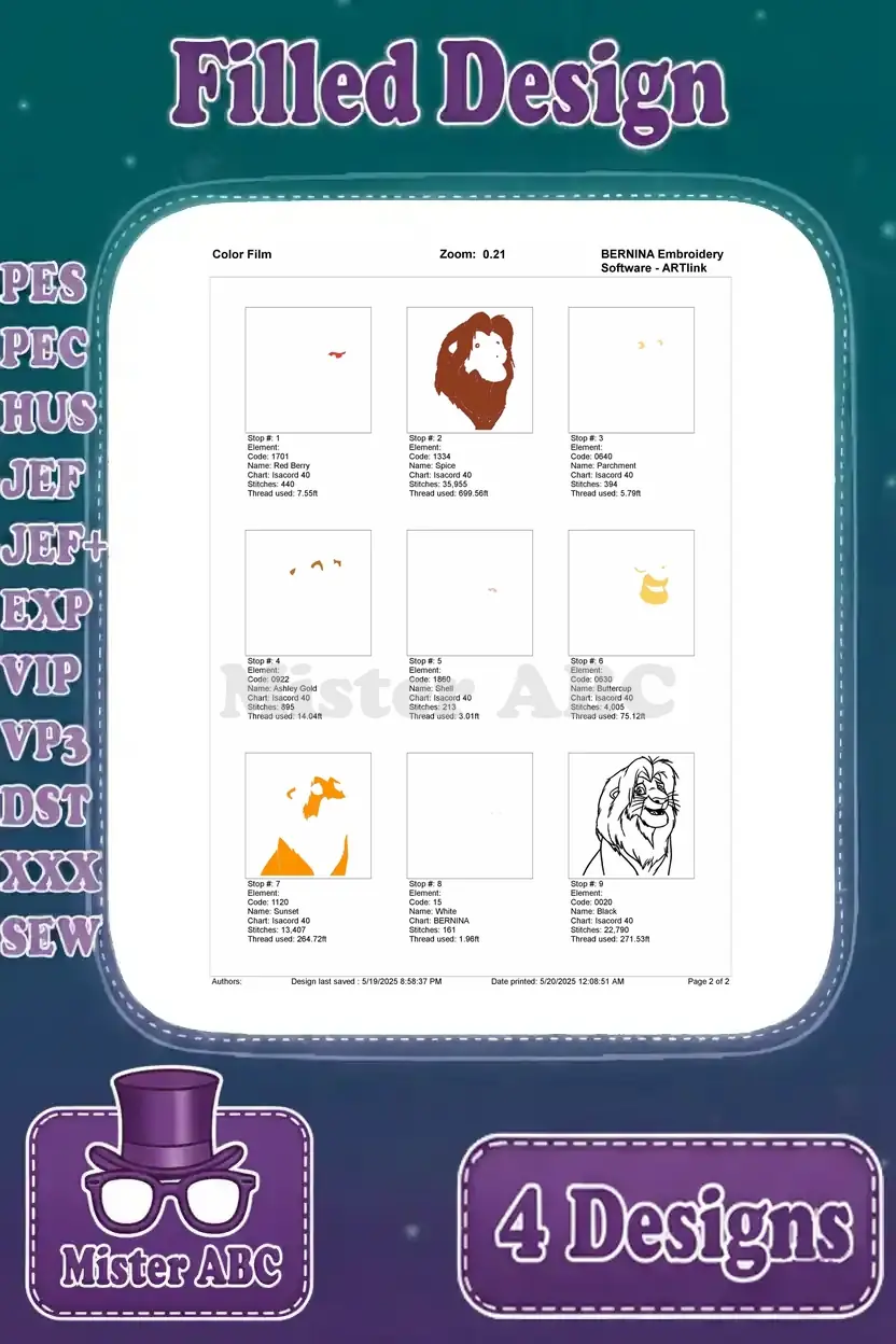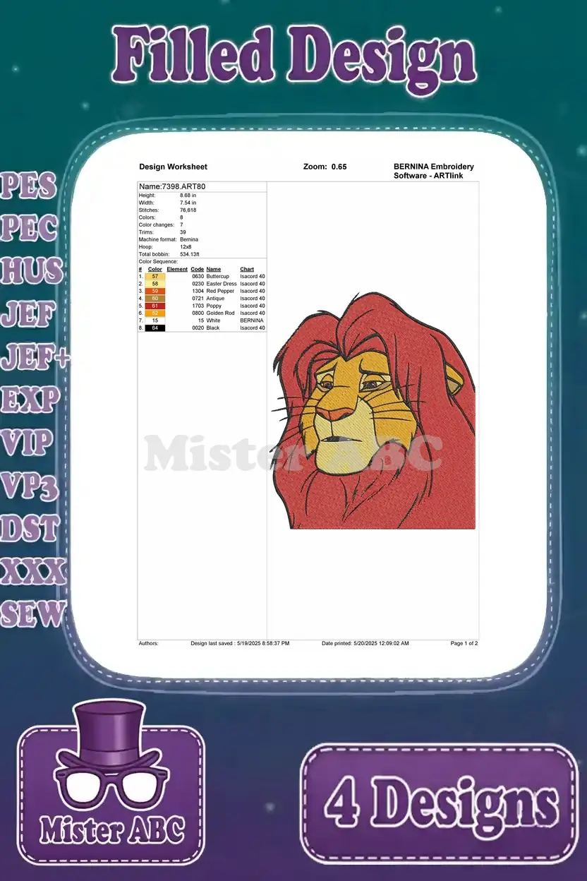 The Lion King Mufasa Majestic Lion King Various Standing Poses And Portraits – Filled Embroidery Design