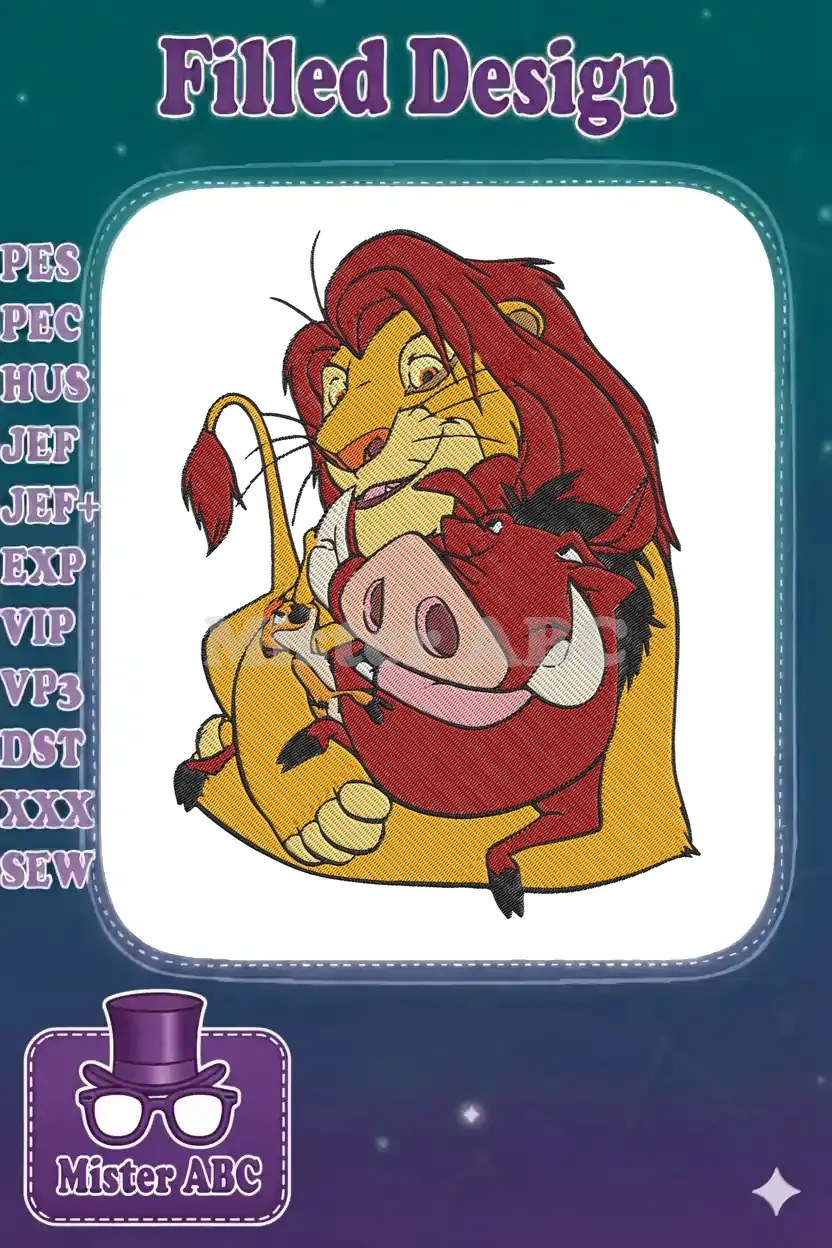 Lion King Mufasa Timon Pumbaa Friendship Embroidery Designs