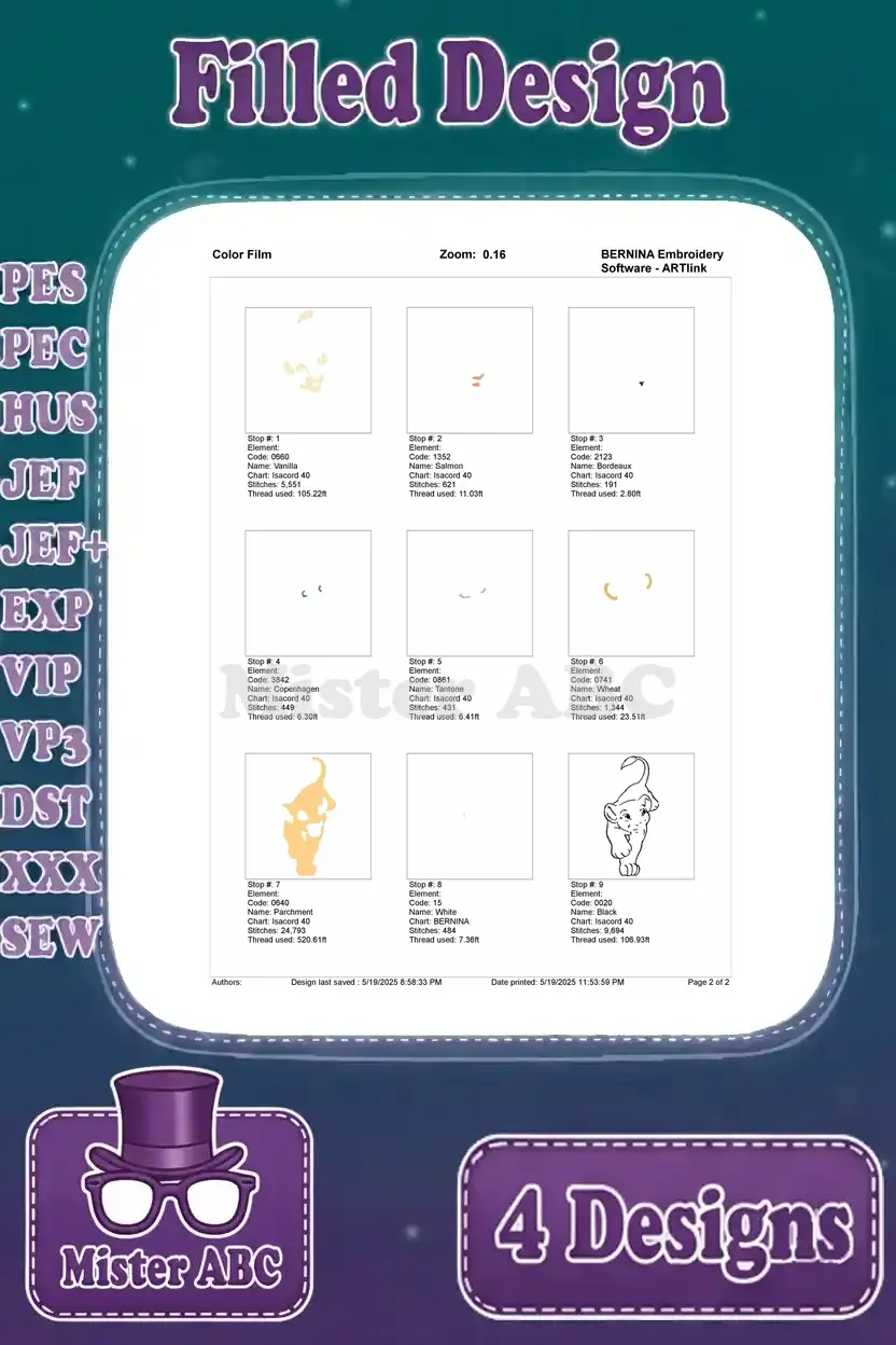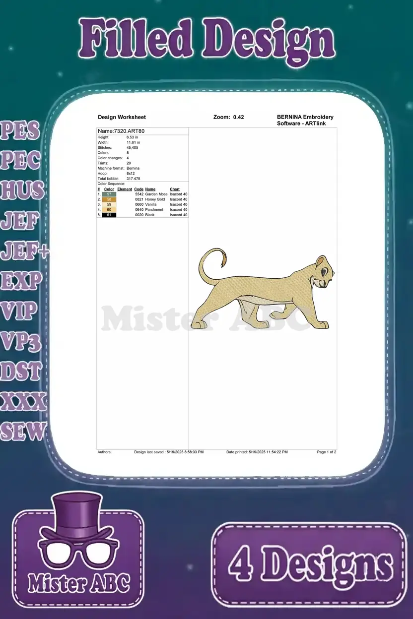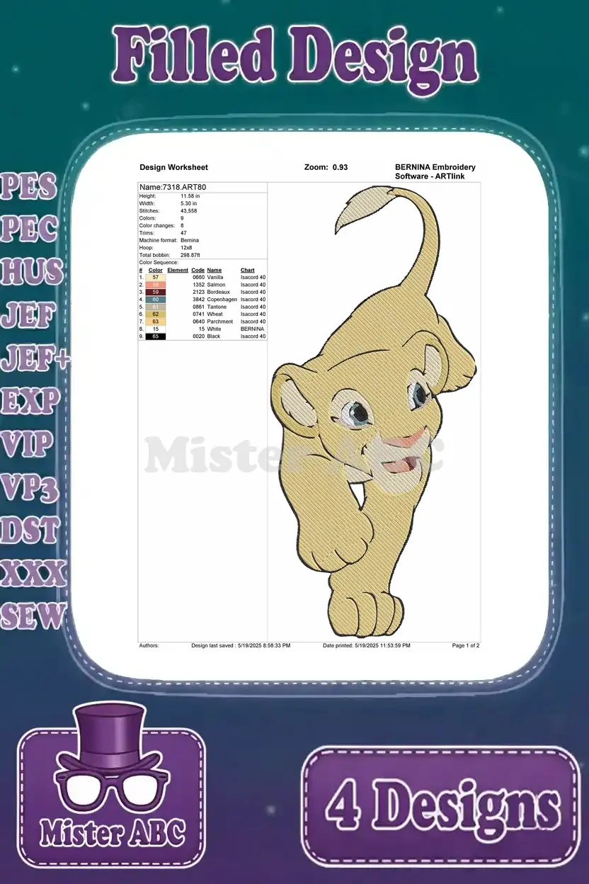 The Lion King Nala Adult Lioness Walking Sitting And Cub Playing Poses – Filled Embroidery Design