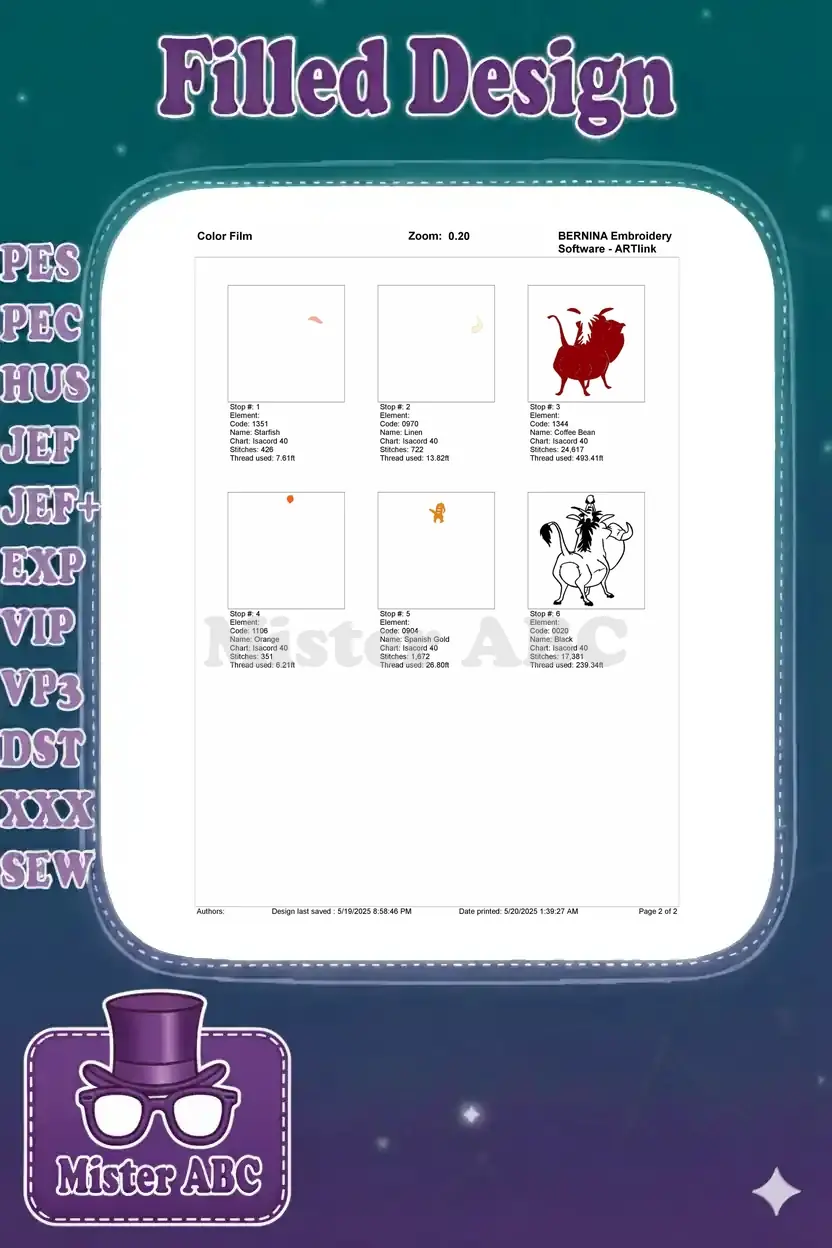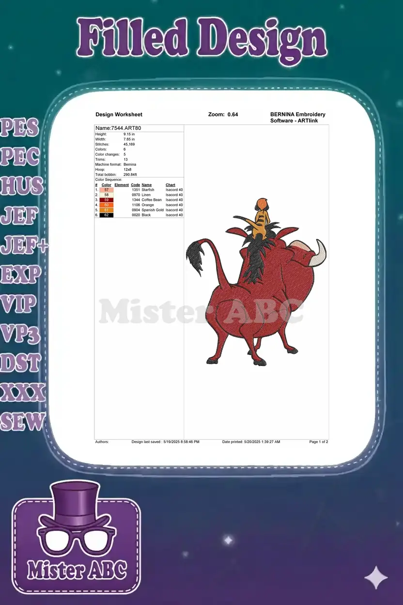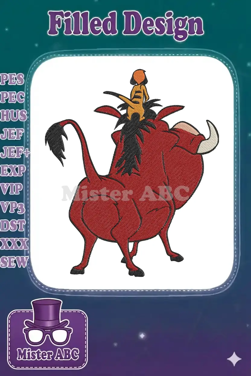The Lion King Pumbaa and Timon friendship embroidery designs