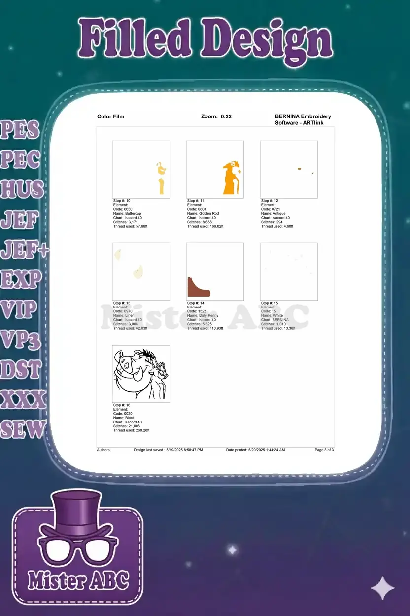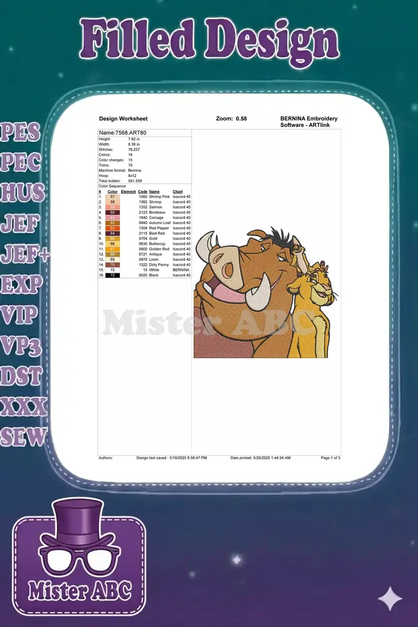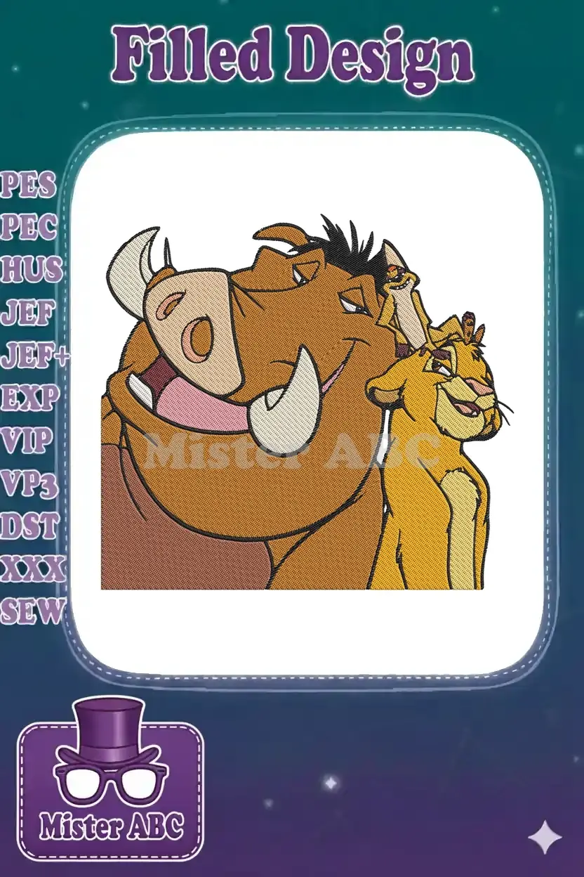 The Lion King Pumbaa Timon Simba happy friends embroidery designs
