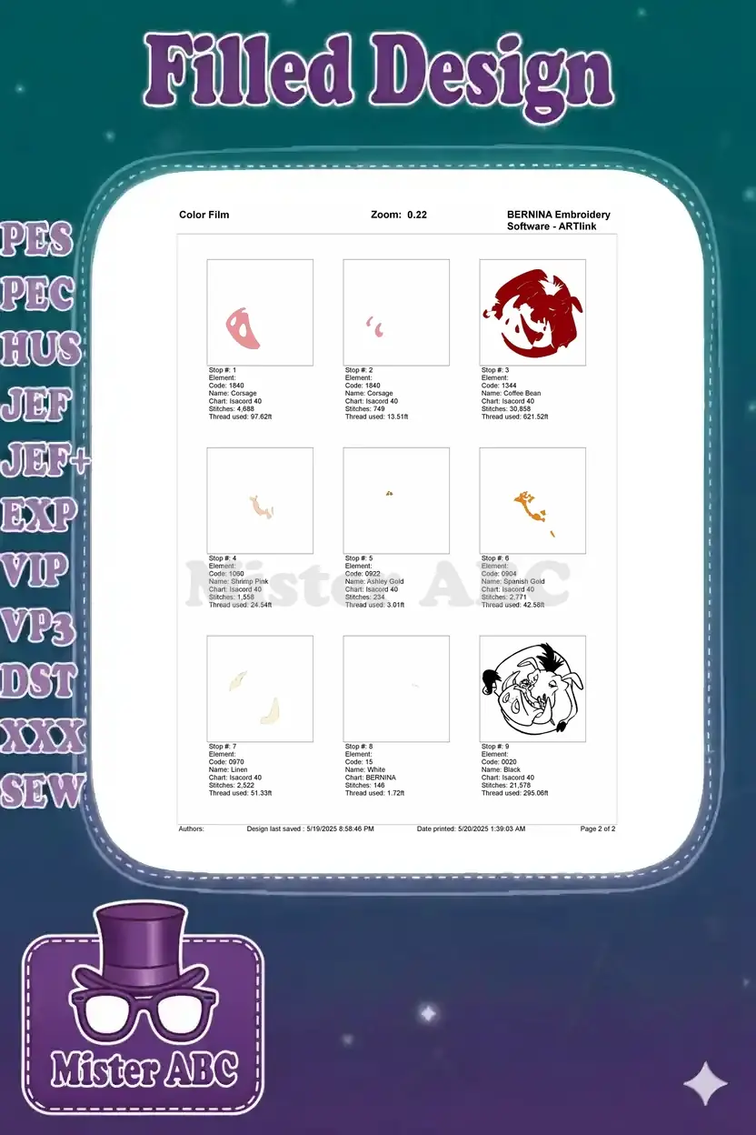 The Lion King Pumbaa and Timon Friendship Embroidery Designs
